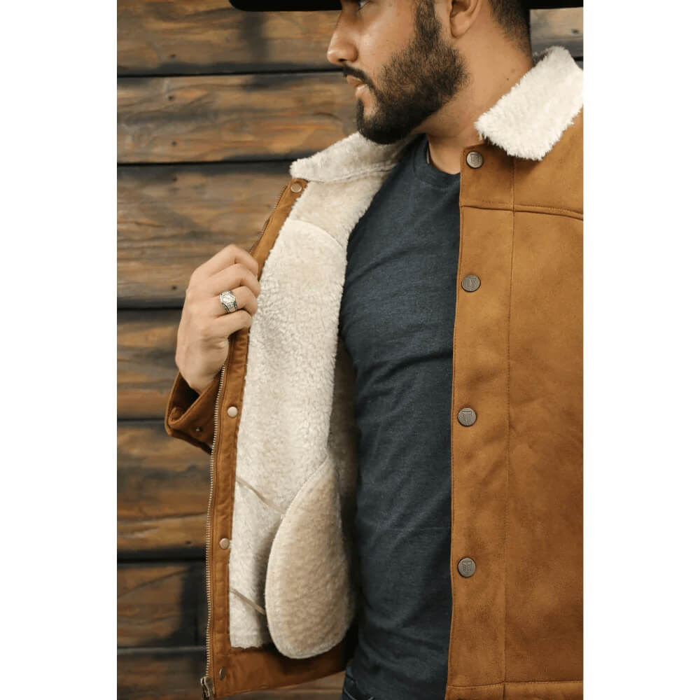 Essential Tempco Mens Marlboro Trucker Jacket. This Mens Suede Trucker Jacket mixes the old west with contemporary fashion. Made of faux suede, this full-zip jacket has a snap front storm flap. Two side-entry pockets give it that authentic Western look. Throw this jacket over anything and for warmth and an authentic western look.