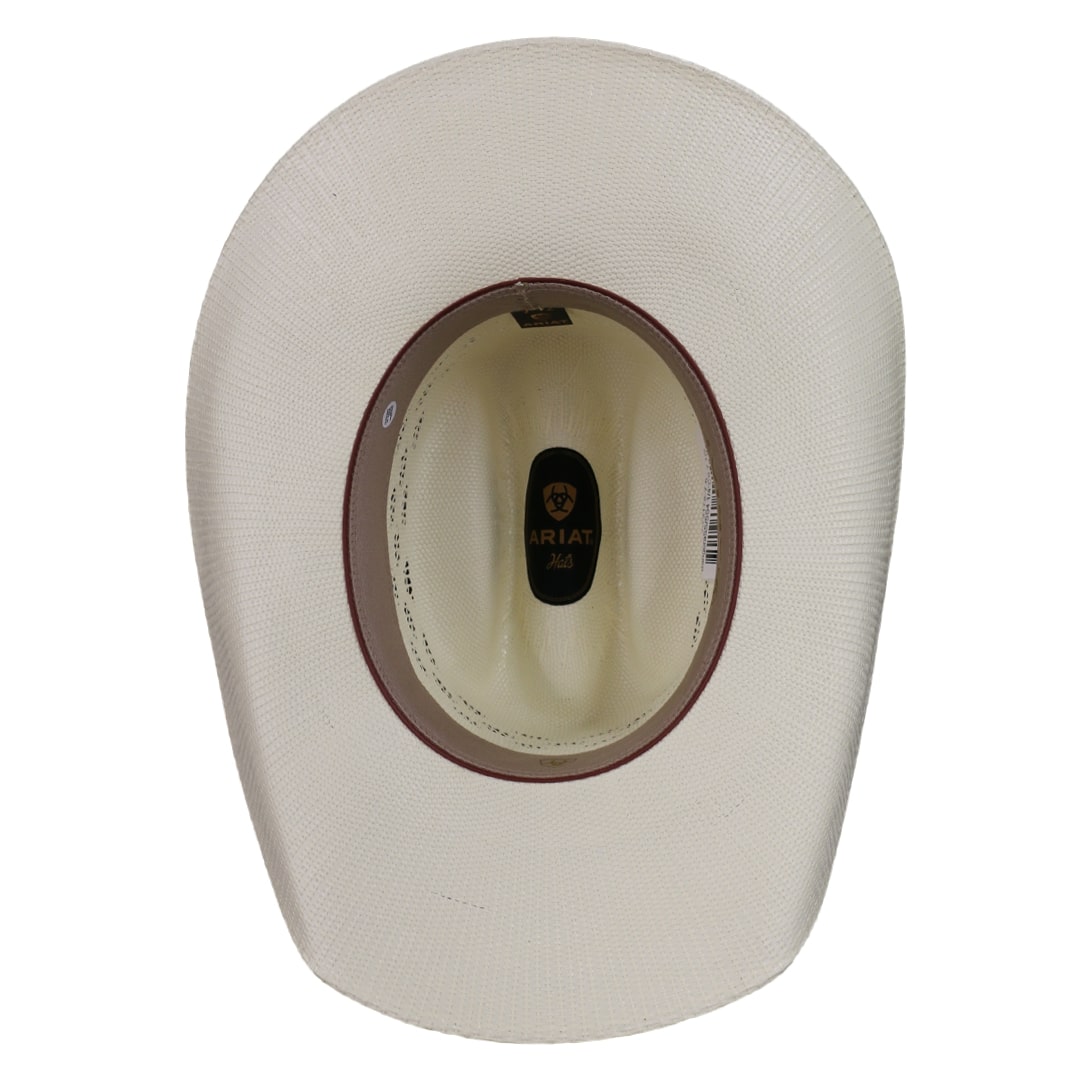 Essential Ariat Mens Bangora Straw Hat. No look is complete without a great hat. You will love this Ariat Bangora cowboy hat by M&F Western Products. There is a decorative hatband and Ariat pin that complete the look. You will appreciate the unbeatable quality and durability, so treat yourself today to this stylish and comfortable hat.