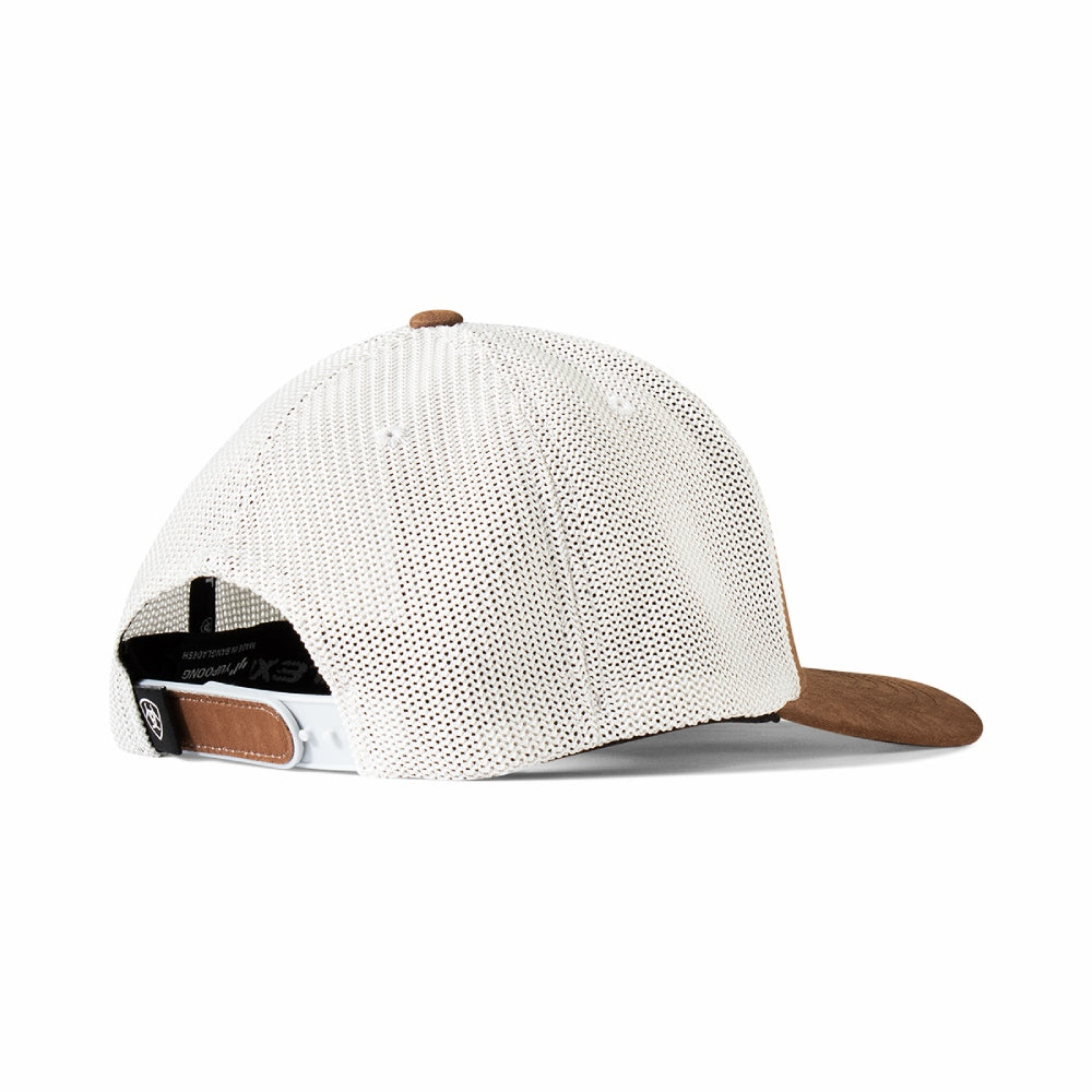 Cool Ariat Mens Brown FlexFit 110 Cap. Ariat mens cap by M&F Western Products. Brown front panels and bill with a diamond shaped faux leather patched with an embossed desert scene and a rubber Ariat logo and shield. Cream colored mesh back and brown fabric snap back closure for that perfect fit.