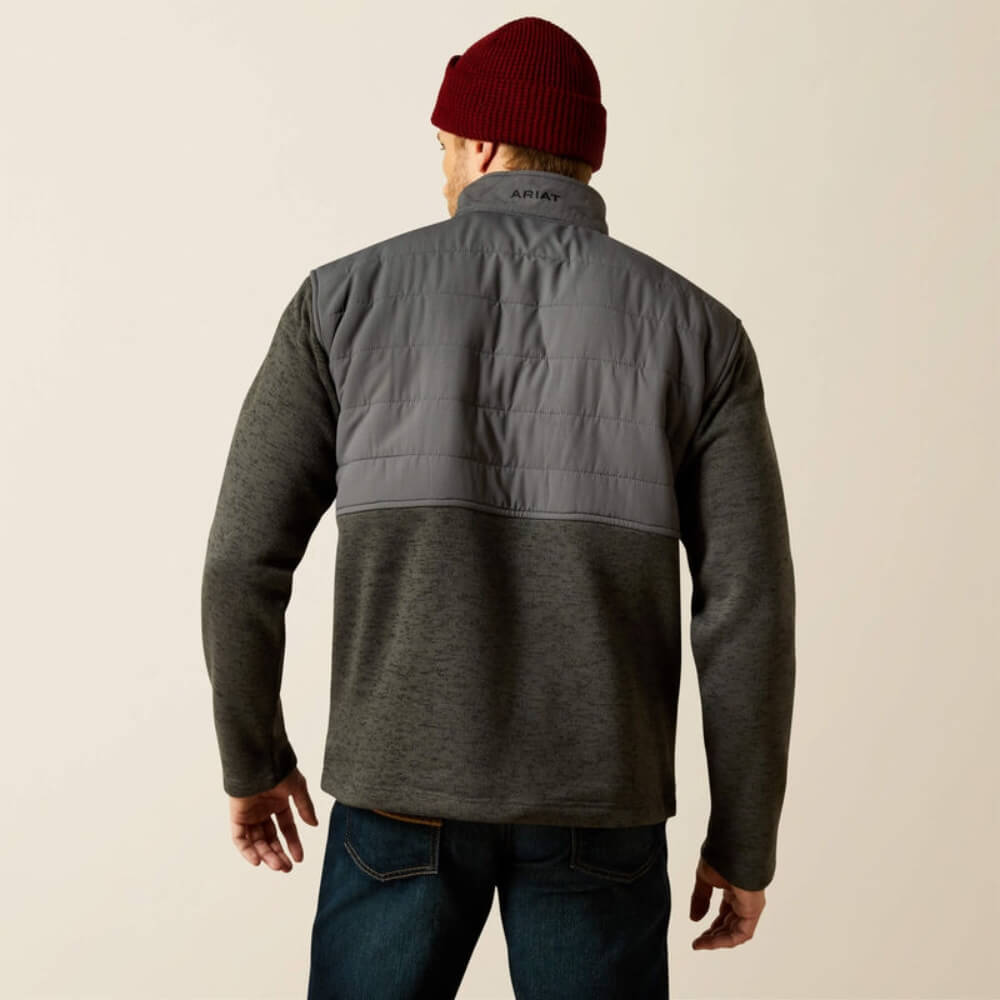 Essential Ariat Mens Caldwell Reinforced Snap Sweater Grey. A great layering piece, this easy-wearing pullover combines a modern silhouette with subtle outdoorsy vibes. The soft, sweater-fleece fabric gives it a sweatshirt-like feel, while the mock collar and slim fit keep it elevated.