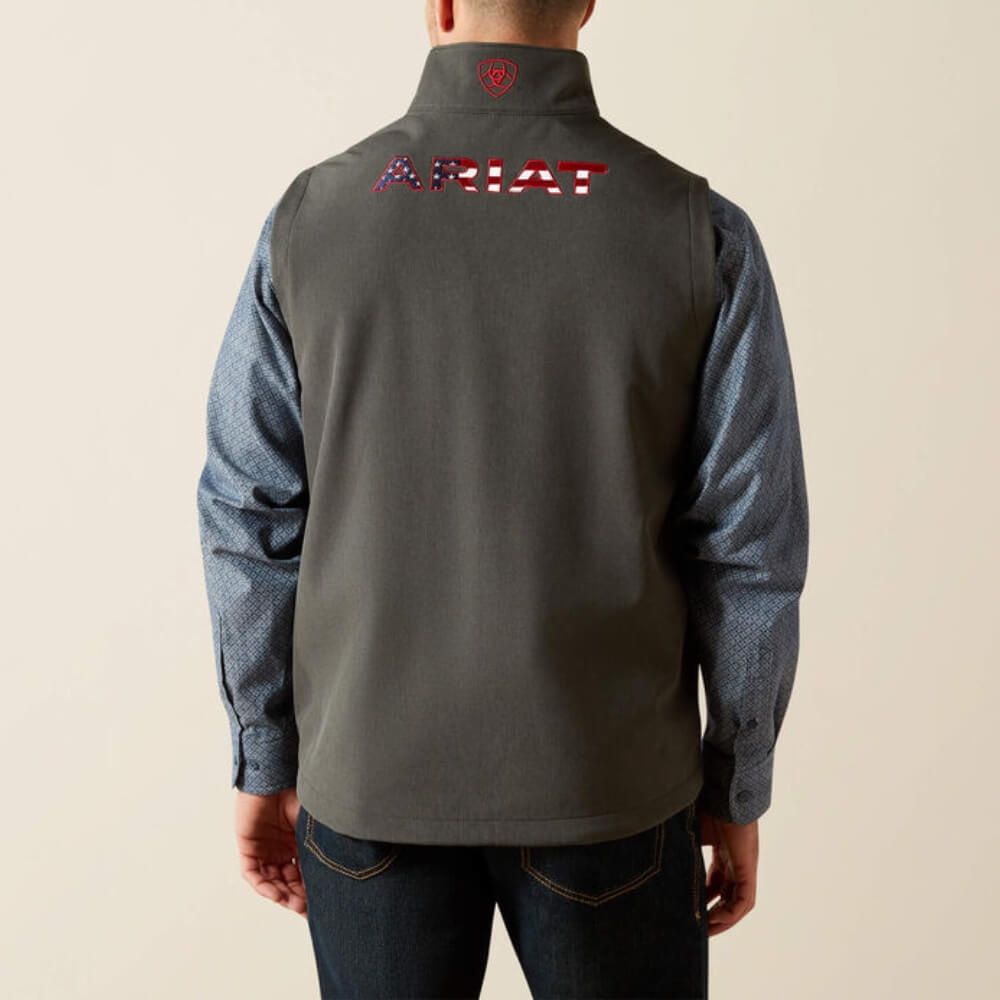 Unique Ariat Mens Logo Softshell Vest. An Ariat icon since 2003, Ariat softshells are a closet staple. They're warm, lightweight, and water resistant—and have plenty of stretch to keep you moving. With a sleek design and an Ariat logo on the back, this vest is versatile enough to wear just about anywhere.