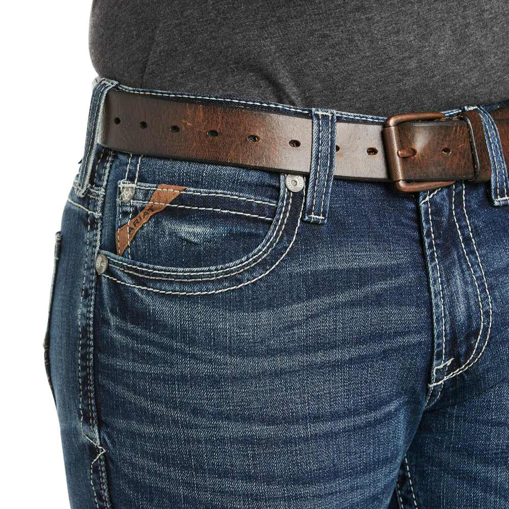 Essential Ariat Mens M7 Rocker Jeans. Western meets rocker edge in these Ariat M7 Straight Leg jeans. It features a touch of spandex that gives the right amount of stretch for a flexible, comfortable fit. Wear them with your favorite boots and tees for comfortable and casual, cowboy style.