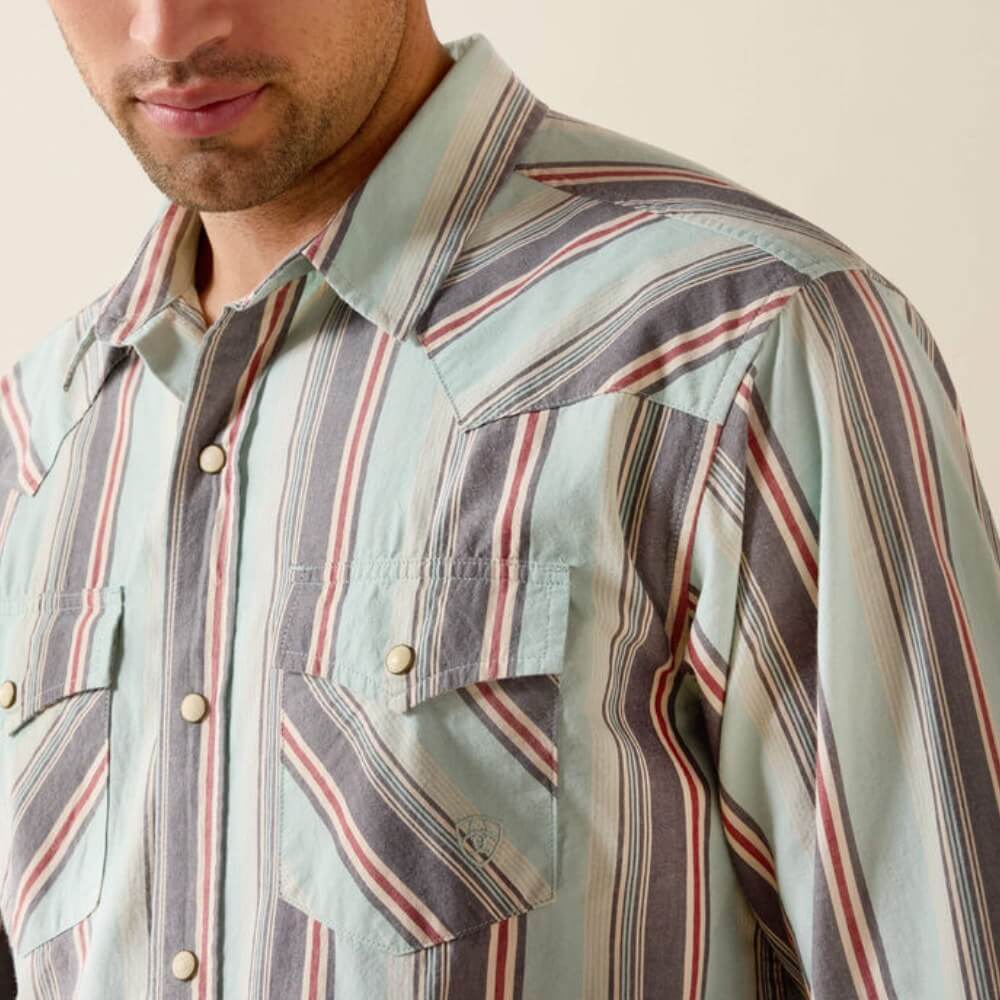 Ariat Mens Retro Hesperus Fitted Snap Shirt Aquifer Plaid - 10071089