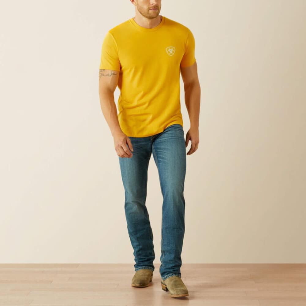 Unique Ariat Mens Rodeo Proud T-Shirt Gold Heather. You can never have too many tees—especially when they're this soft. With patriotic rodeo graphics, it's a comfy staple you'll wear on repeat.