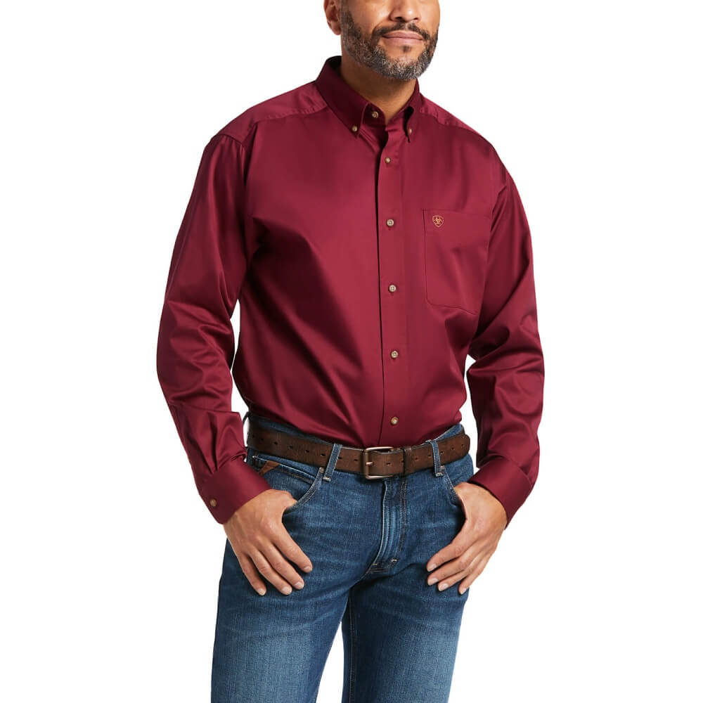 Classic Ariat Mens Solid Twill Shirt. Capturing the essence of Western style, Ariat's casual shirts blend rugged handsomeness with comfort and quality construction.
