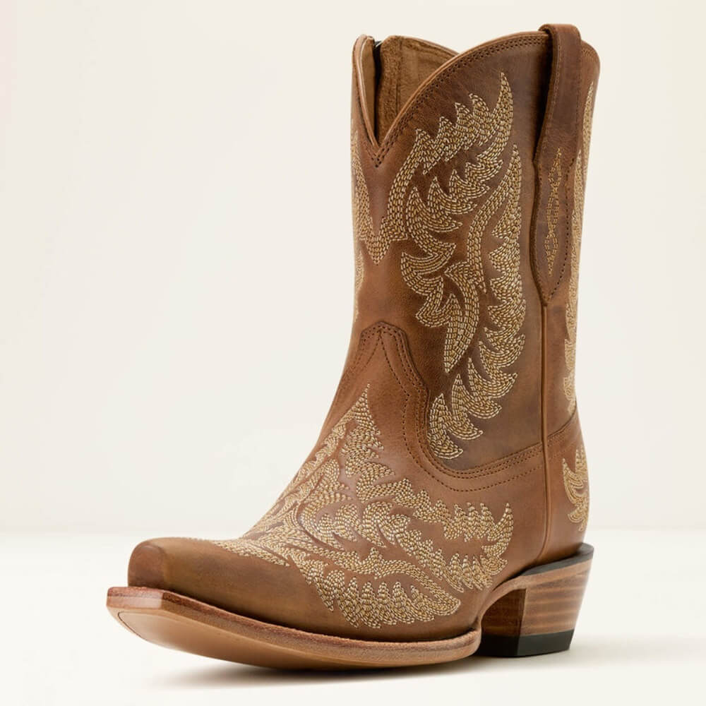 Essential Ariat Womens Cate Western Boots Shades of Grain. With classic Western styling and a just-right shaft height, this cute boot is so easy to style. Let cropped pants graze the top or wear with trousers for a true cowboy-boot look. Subtle stitching and a wearable heel add even more versatility.