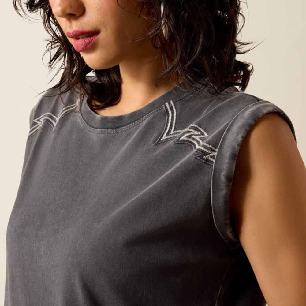 A little country and a little rock and roll, this mineral-washed T-shirt dress is the star of the show wherever you wear it. With a switch of accessories, it goes from casual to edgy, so you can take it from Saturday brunch with the girls to front row at your favorite festival concert.