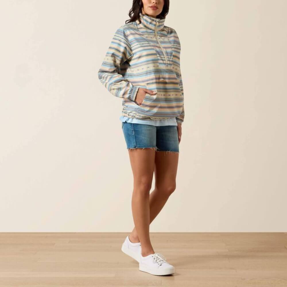 Sporty and chic, this ultra-lightweight windbreaker nods to the '80s while feeling just right for the moment. A front half zip and cinchable hem block out water, so you can stay dry but still look cute on drizzly days.