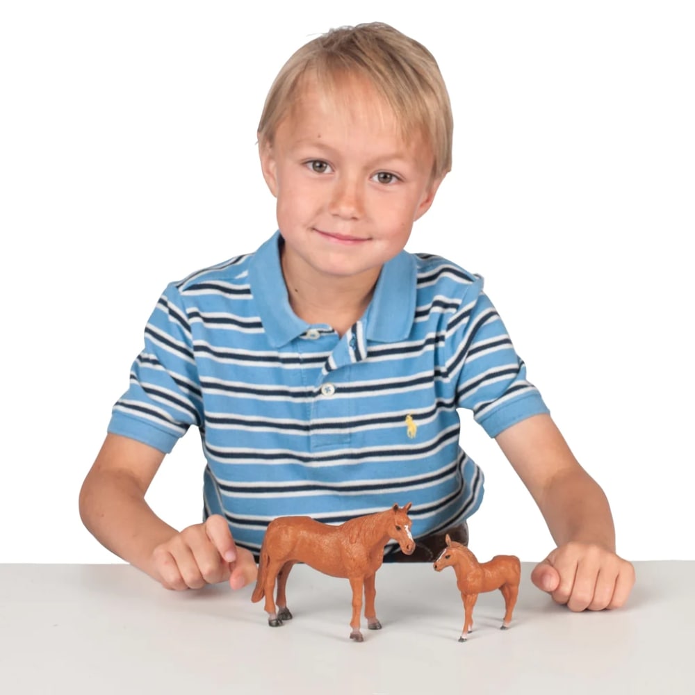 Big Country Farm 1:20 scale Quarter Horse Mare and Colt fits with Big Country Farm full line of farm and ranch vehicles, figurines, and accessories. Perfect for pretend farm and ranch play!