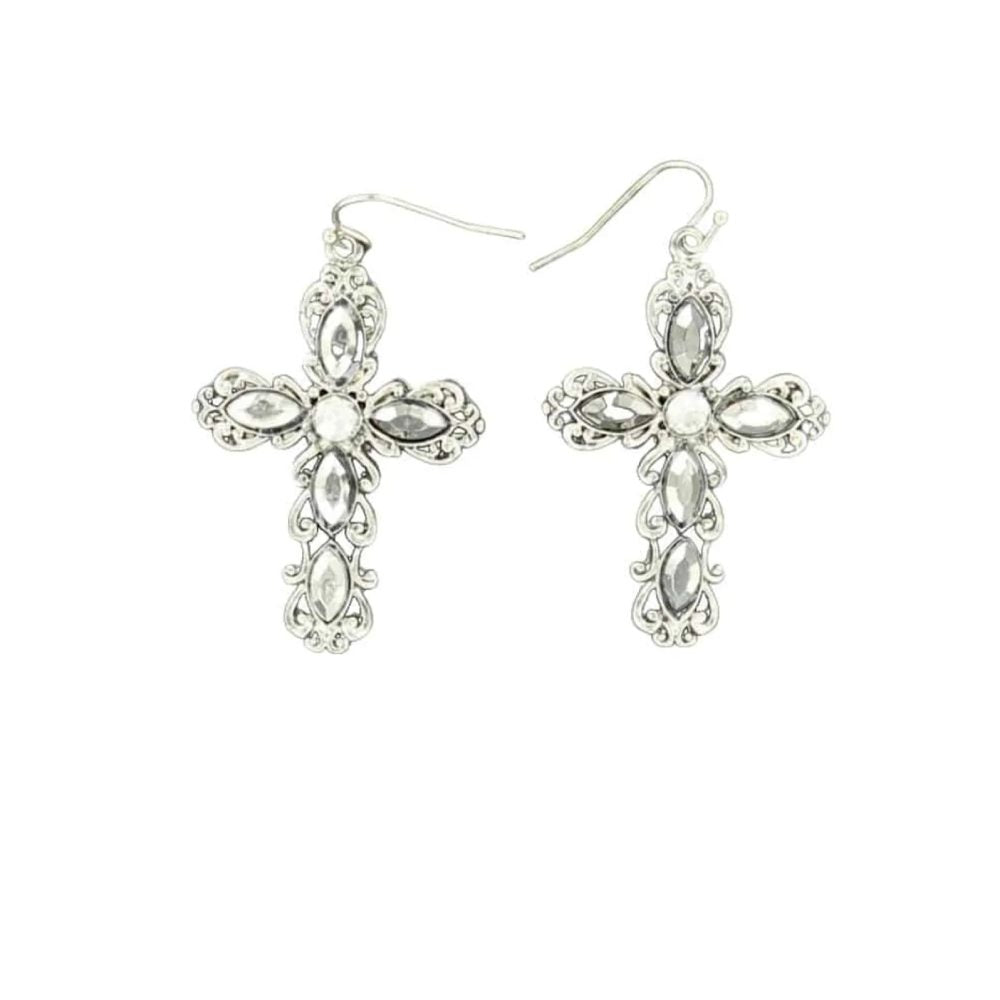 Classic Blazin Roxx Womens Ornate Crystal Cross Silver Earrings