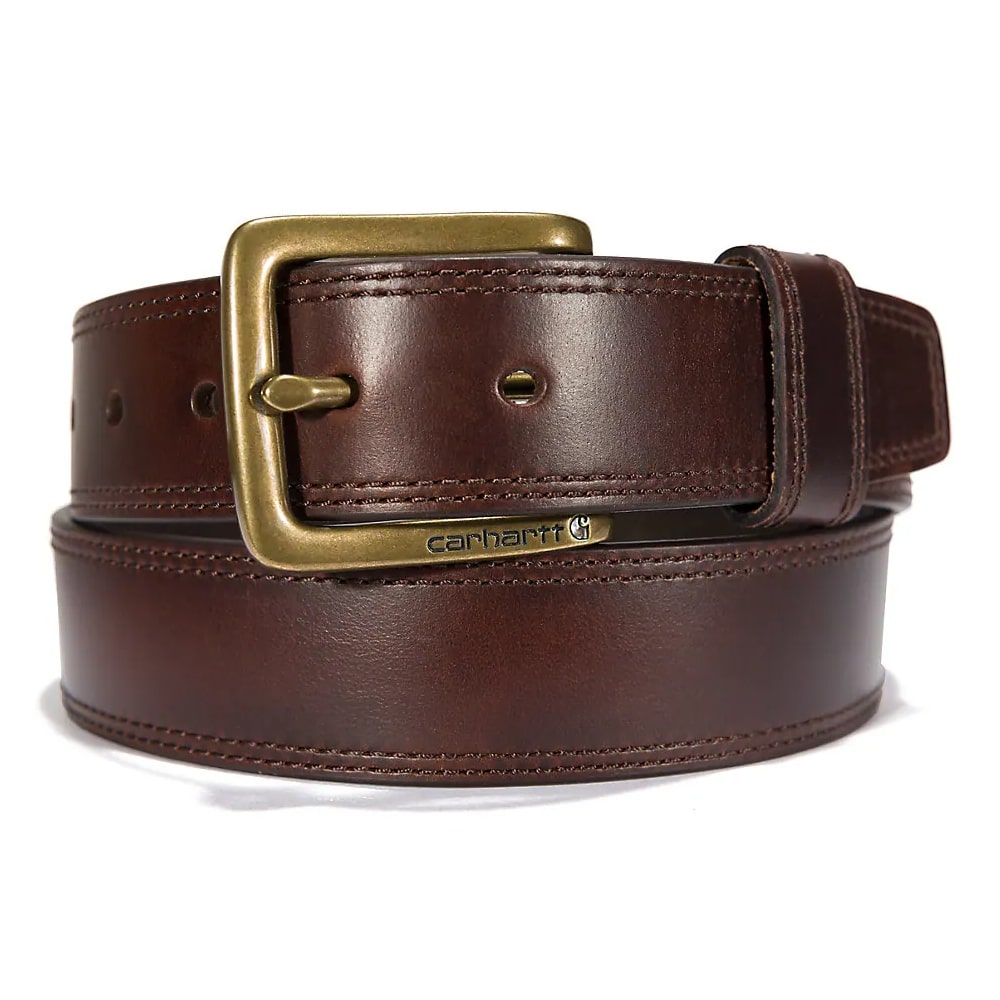 Durable Carhartt Mens Hamilton Brown Belt. Tough enough to hold up five pairs of pants at once, this mens belt also looks great at Sunday dinner. It's designed to last in high-quality top-grain leather with a double row of stitching around the strap.