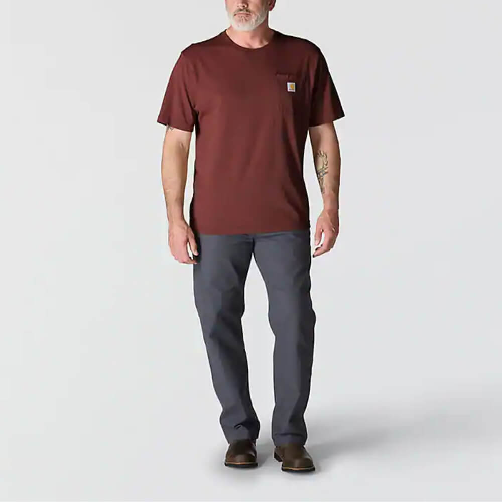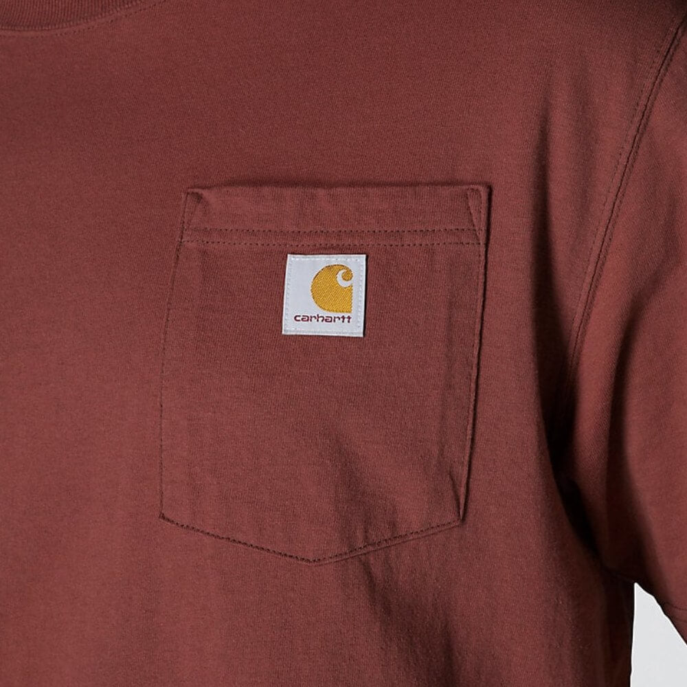 Classic Carhartt Mens Loose Fit Pocket T-Shirt Dark Spice Red. Carhartt’s pocket t-shirt debuted in 1992, and its rugged cotton design and clean looks made it a fast favorite among the hard-working folks who pulled it on. Though decades and trends have come and gone, there's a reason the K87 remains a classic. This men's t-shirt is made with heavyweight cotton built to handle tough days on the job. It has an loose fit that gives you room to move and a soft feel that only gets better with time.