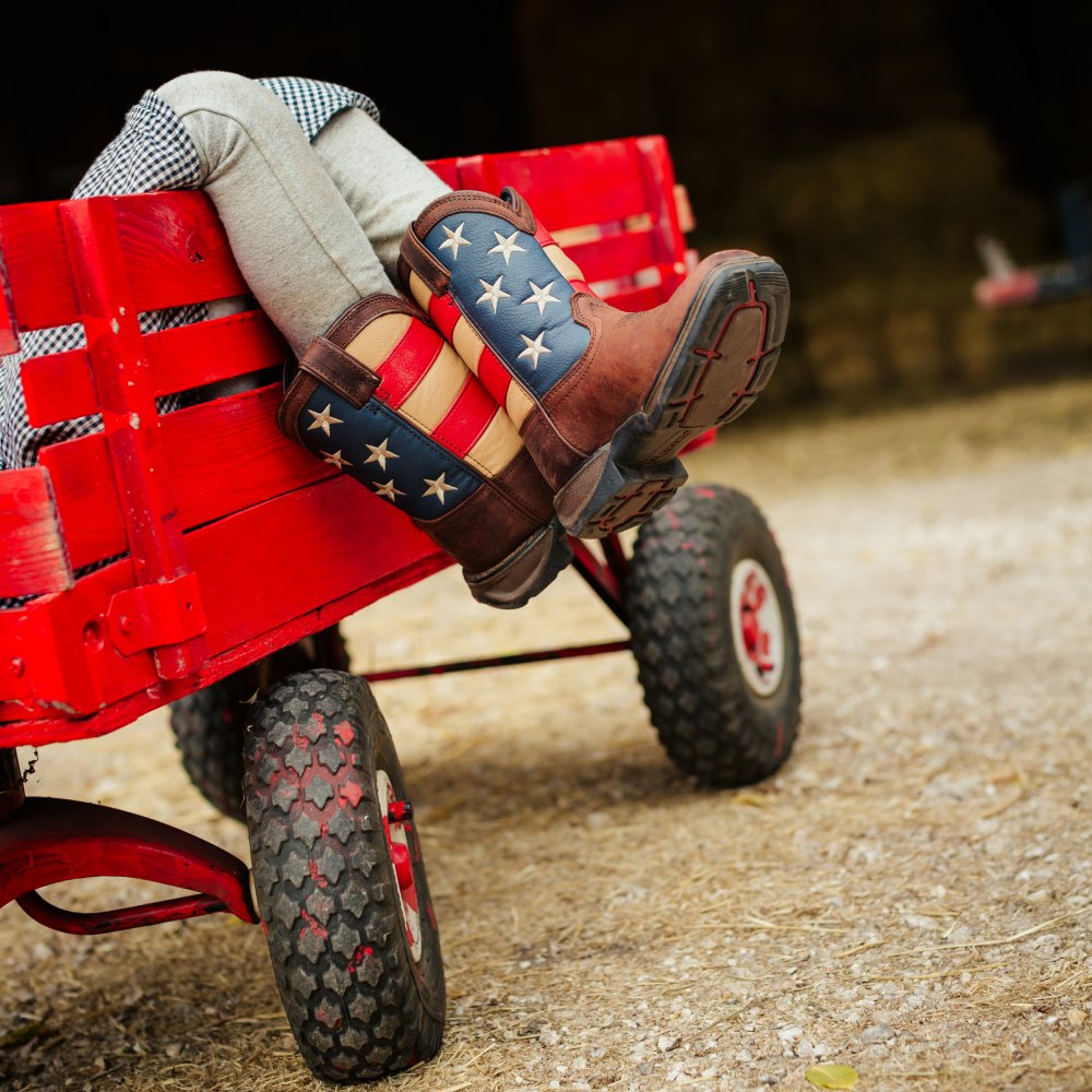 Durable Durango Lil' Boys Flag Western Boots Brown. Kids can show their patriotic spirit with this colorful and fun cowboy boot from Durango.