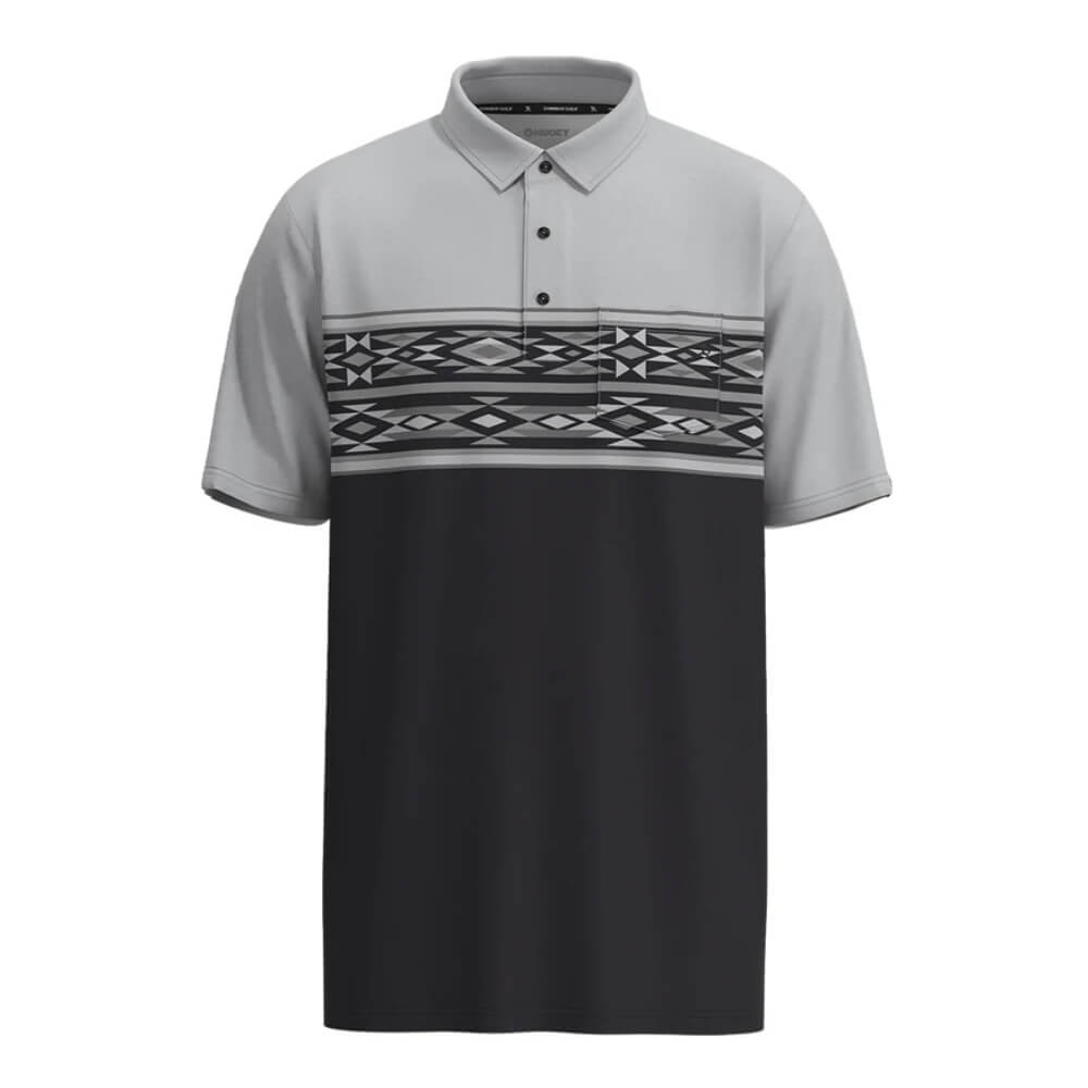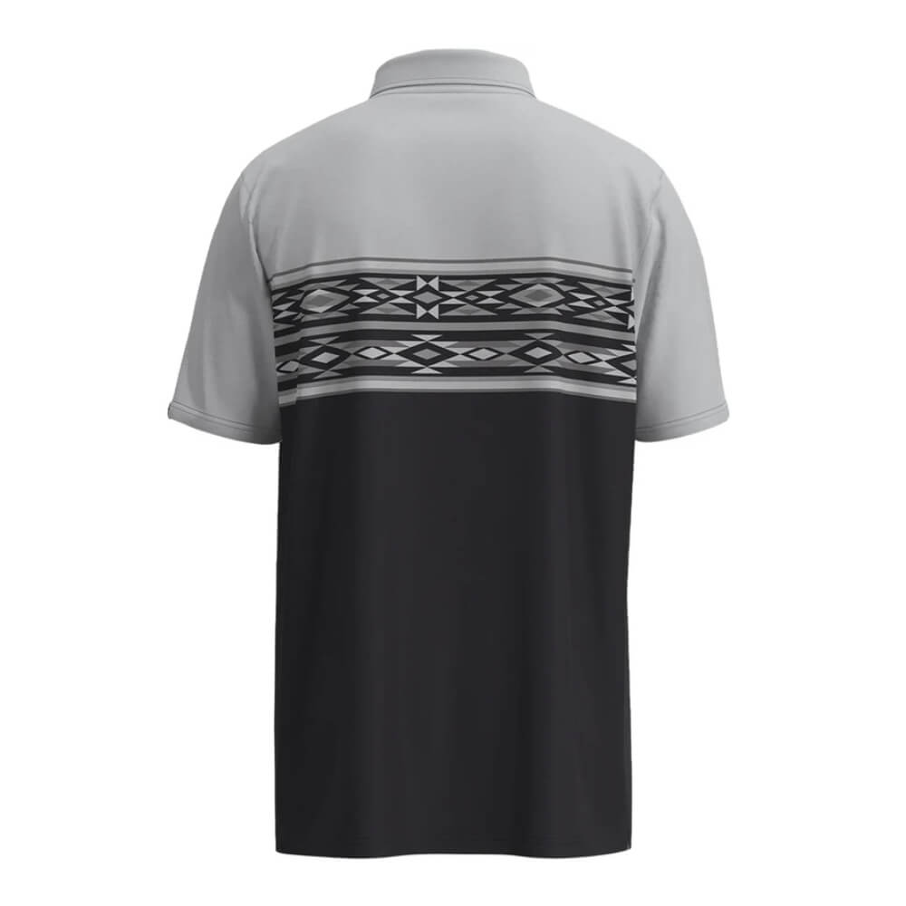 Hooey Mens "Hot Shot" Polo Shirt Black/Grey w/Aztec - HP2603BKGY