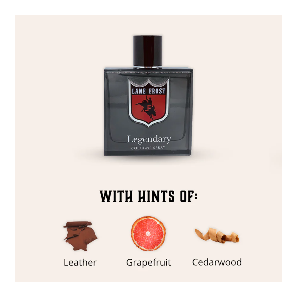 Lane Frost new Legendary cologne is the first fragrance Lane frost has released, made in the USA, and has a fresh, clean, masculine scent — with an underlying hint of leather and cedarwood that any cowboy can appreciate.