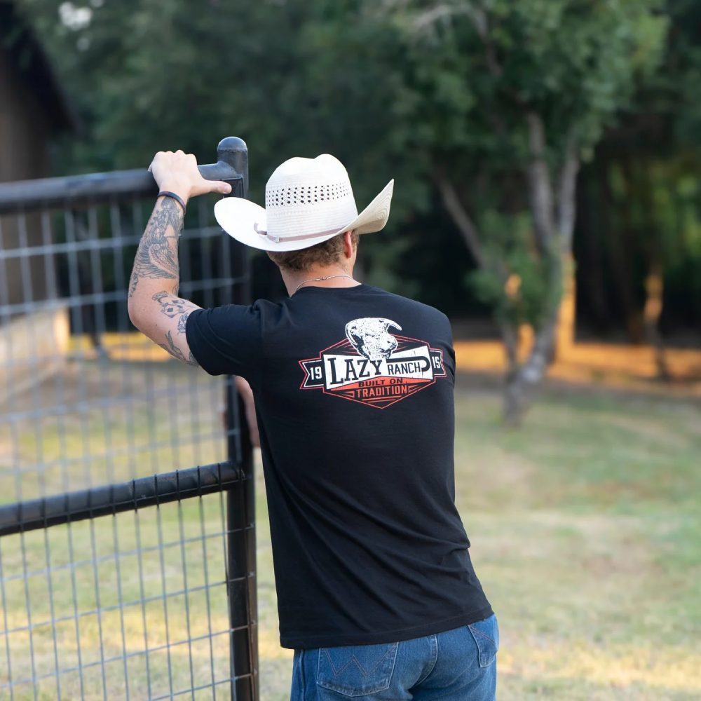 Cool Lazy J Mens Domino Short Sleeve T-Shirt Black. Introducing the Lazy J Ranch Wear Black Domino Short Sleeve T-Shirt in Black — a must-have for any cowboy or ranch enthusiast looking for authentic Western style with everyday comfort. This premium tee features a vintage-inspired Lazy J Ranch Wear graphic. Crafted from soft, breathable cotton polyester blend, this shirt delivers both durability and style whether you’re out on the ranch or kicking back after a hard day's work.