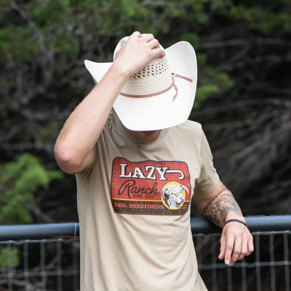 Fresh Lazy J Mens Hard Day T-Shirt Tan. Introducing the Lazy J Ranch Wear Hard Day T-Shirt in Tan — a must-have for any cowboy or ranch enthusiast looking for authentic Western style with everyday comfort. This premium tee features a vintage-inspired Lazy J Ranch Wear graphic. Crafted from soft, breathable cotton polyester blend in a versatile tan color, this shirt delivers both durability and style whether you’re out on the ranch or kicking back after a hard day's work.