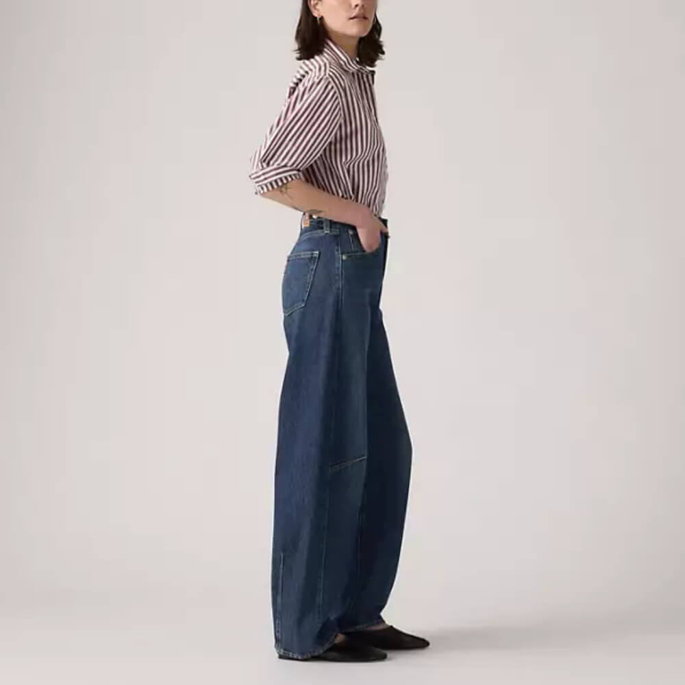 Love the classic baggy denim look but dread the waist gap? Look no further than Levi’s Cinch Barrel jeans. Cut with a flattering high rise and a curved leg, this style features adjusters on the back for a tailored-to-you fit that celebrates every curve.