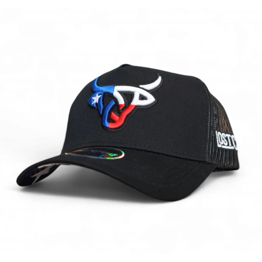 Baseball cap with Lost Calf logo embroidered on front, Lost Calf stitched on left side. Snap back - one size fits all.