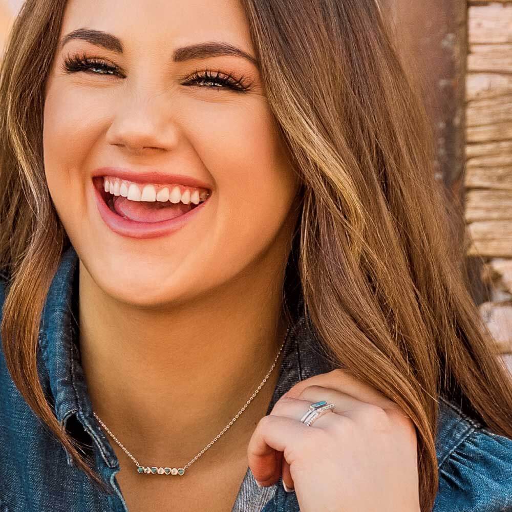 Materials: Sterling silver. Crafted turquoise. Cubic zirconia. Montana Armor to prevent tarnish.