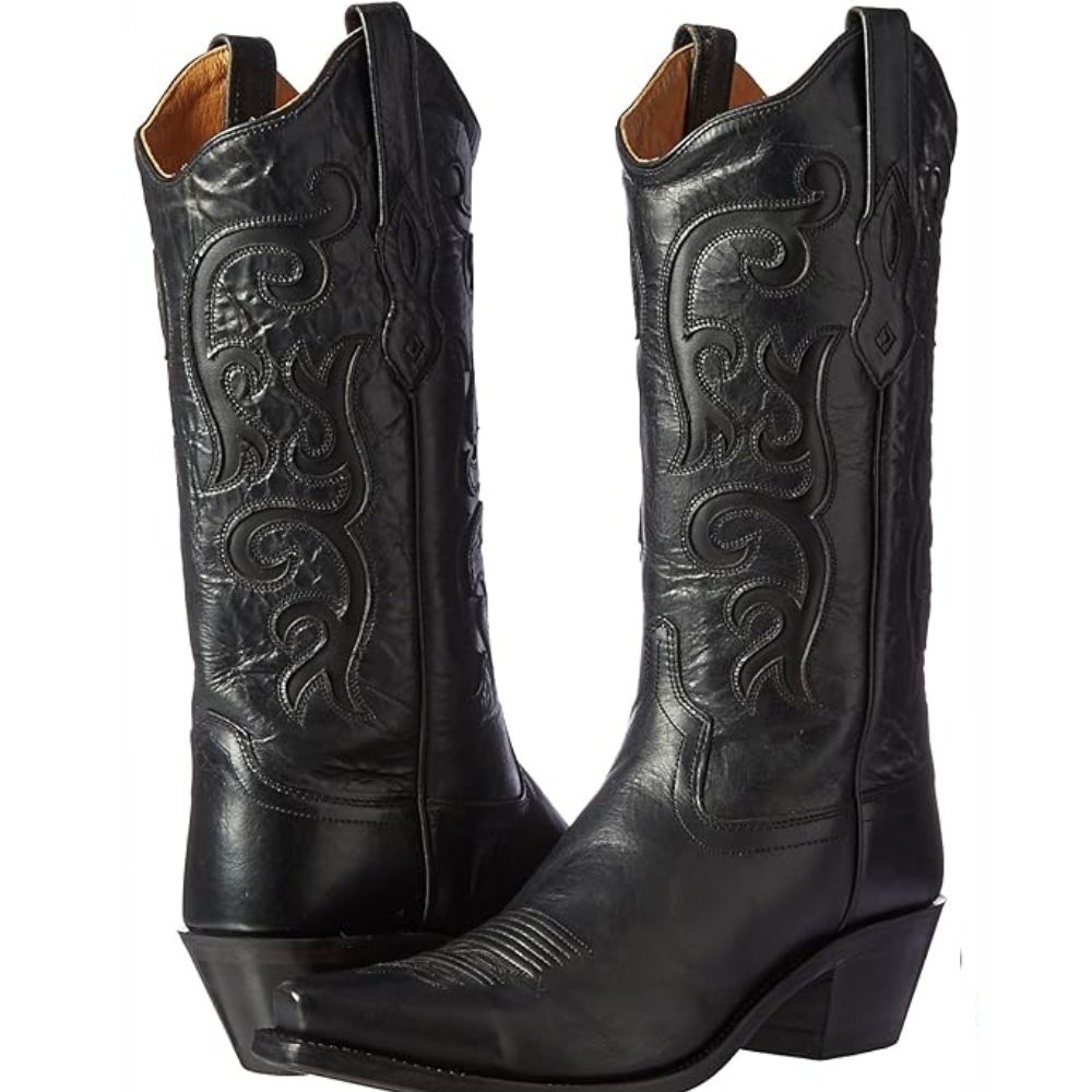 Beautiful Old West Womens Western Cowboy Boots. These authentic western black leather women’s cowboy boots from Old West feature a snip toe, high cowboy heel , and leather outsole. Constructed from high quality leather, these boots are made to last.