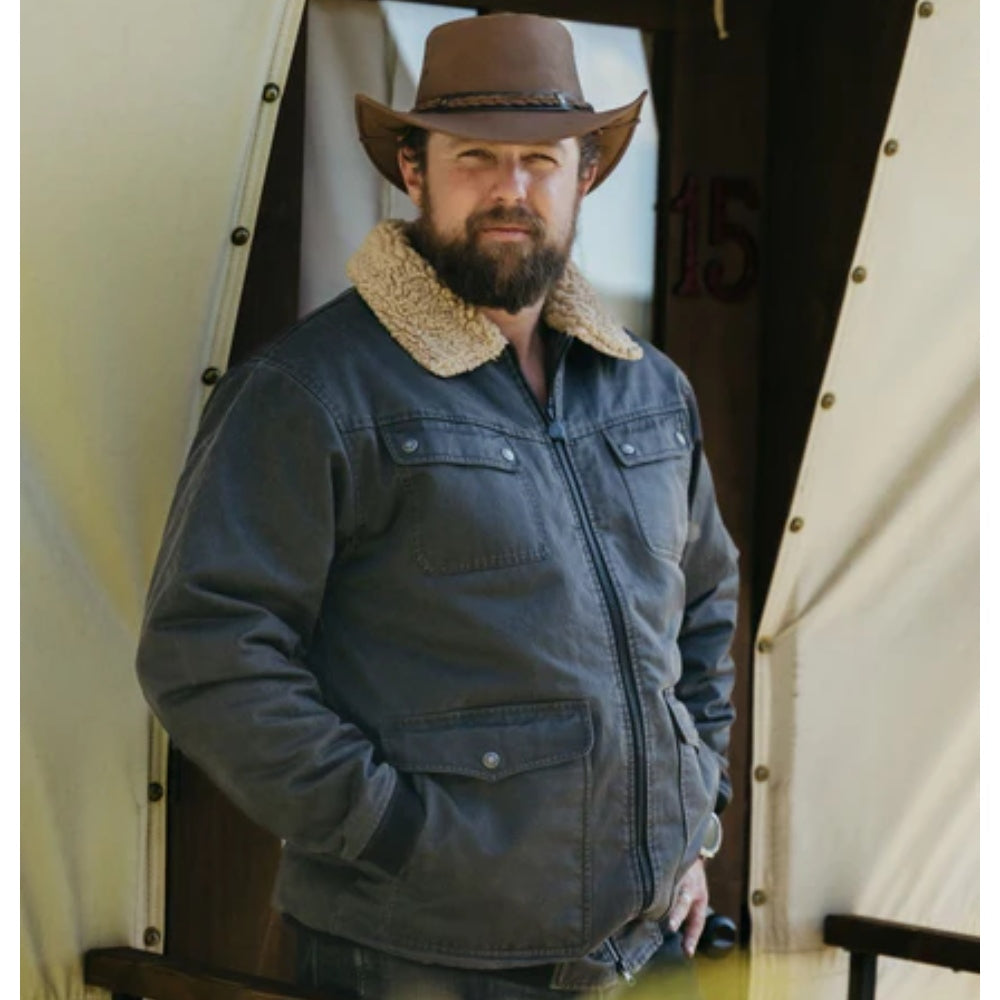 Durable Outback Mens Ezra Aviator Jacket Iron Grey. Warm Outback Mens Ezra Aviator Jacket. Who says you can't work hard and look great doing it? The new Ezra Aviator is going to be a new staple in your closet, featuring dual entry hip pockets, double snap chest pockets, and an inside security pocket, you will be ready to get your hands dirty or hit the town while making a statement.