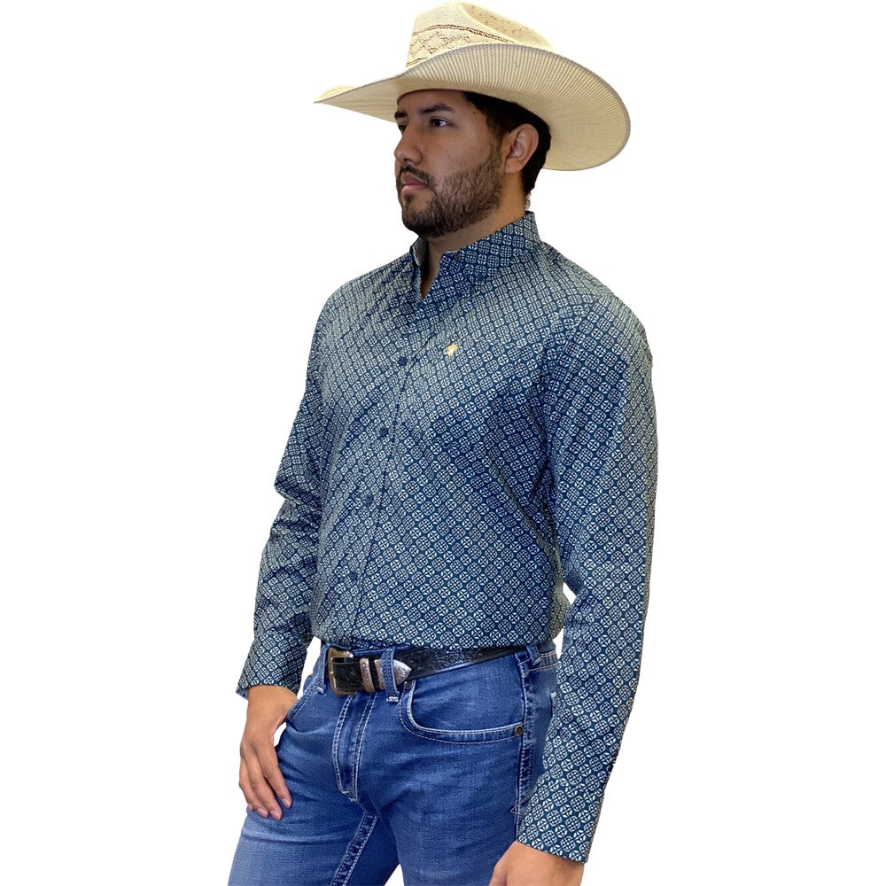 Starr Mens Printed Button Down Long Sleeve Shirt Blue Geo - SWPTBLS-394