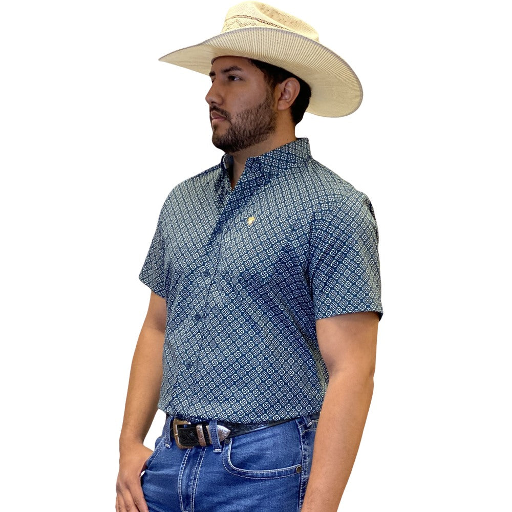 Starr Mens Printed Button Down Short Sleeve Shirt Blue Geo - SWPTBSS-394