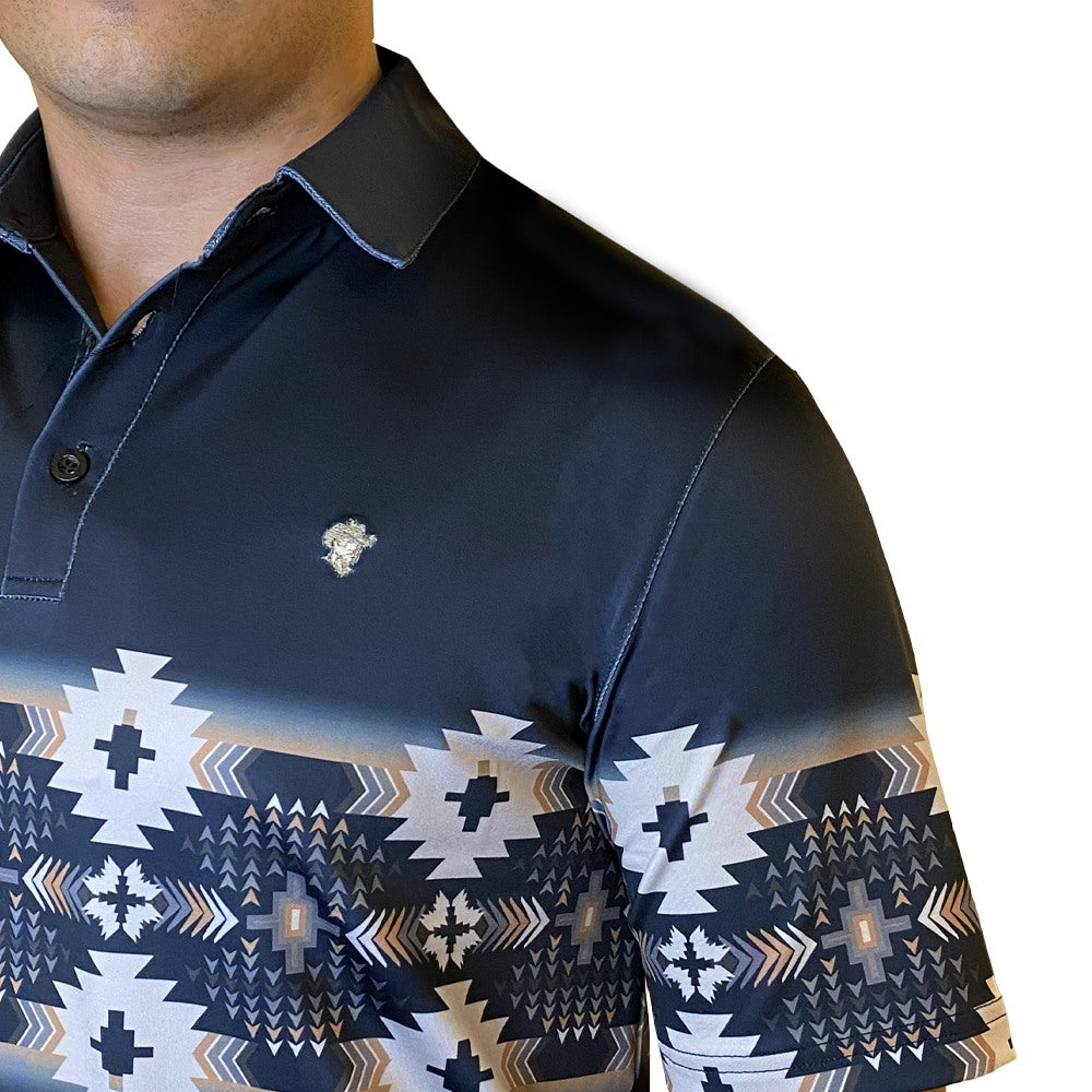 Versatile Starr Mens Printed Short Sleeve Polo Shirt Navy Aztec