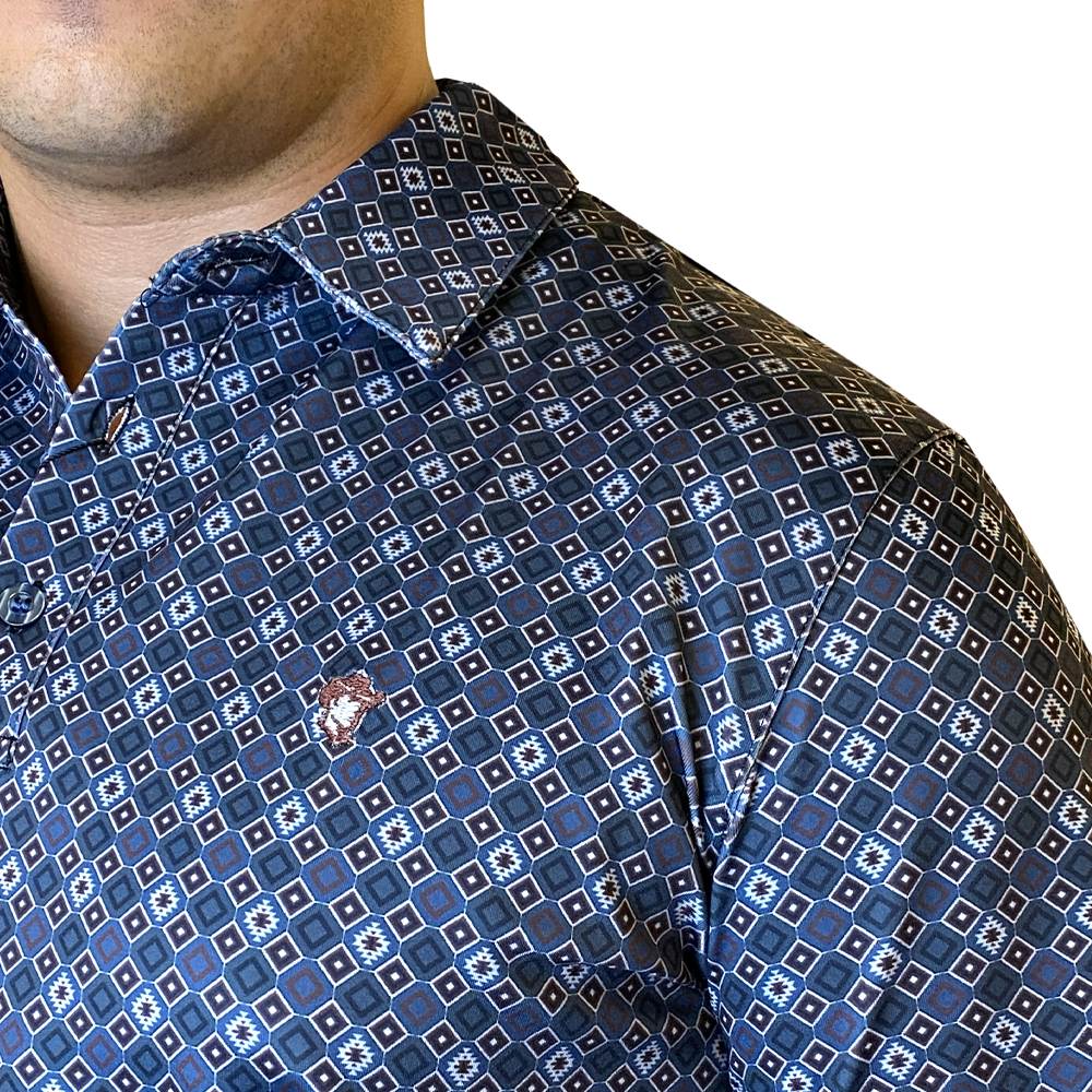 Versatile Starr Mens Printed Short Sleeve Polo Shirt Blue Geo