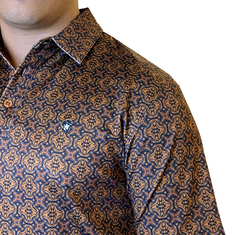 Versatile Starr Mens Printed Short Sleeve Polo Shirt Brown Geo