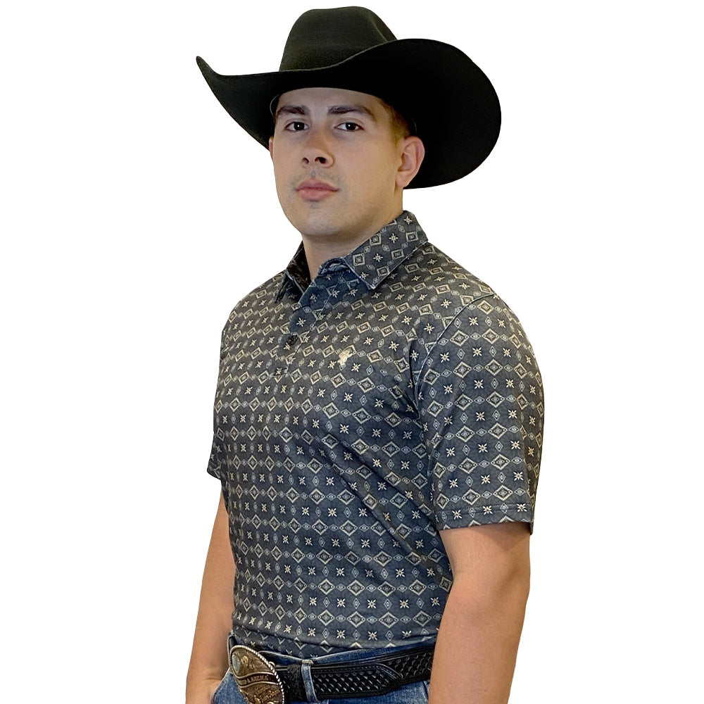 Versatile Starr Mens Printed Short Sleeve Polo Shirt Grey Geo