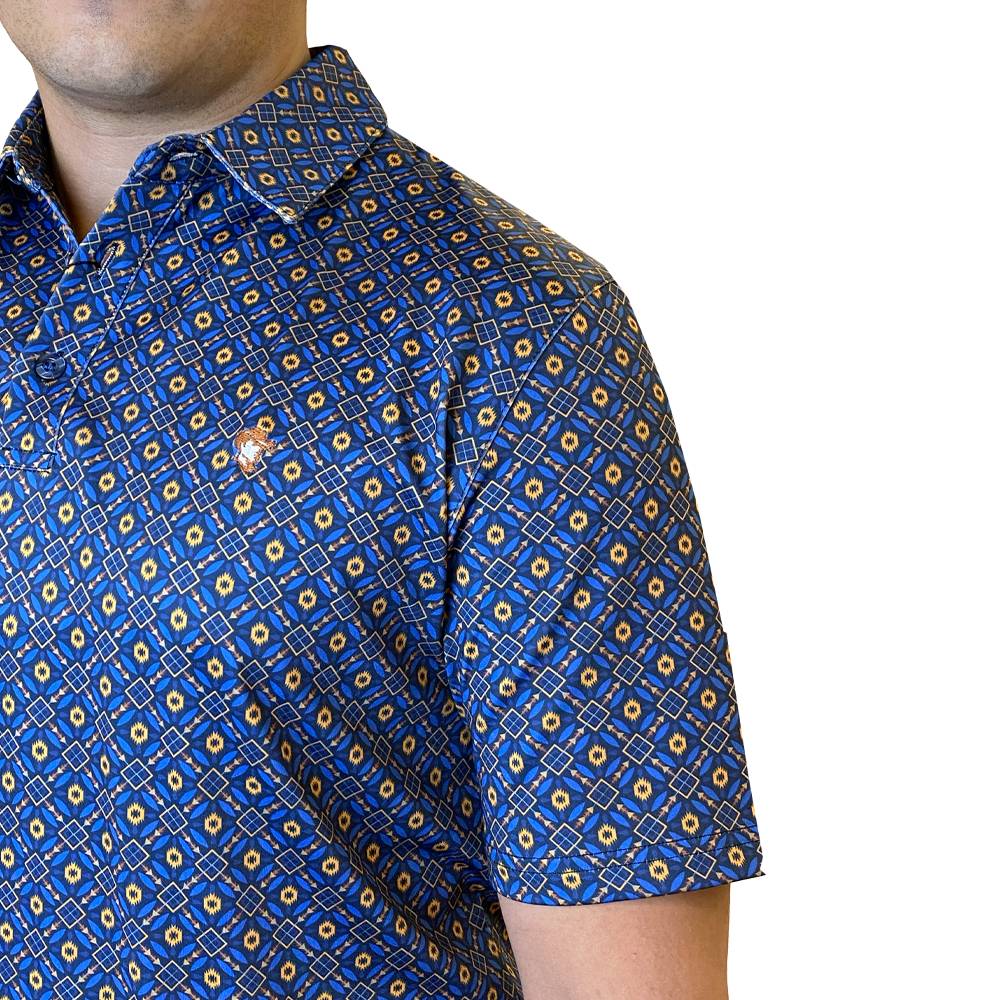 Versatile Starr Mens Printed Short Sleeve Polo Shirt Dark Blue