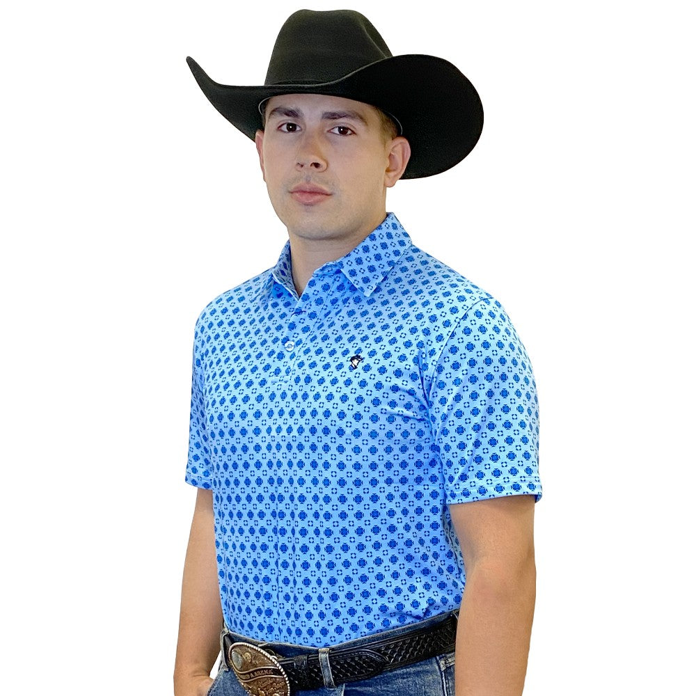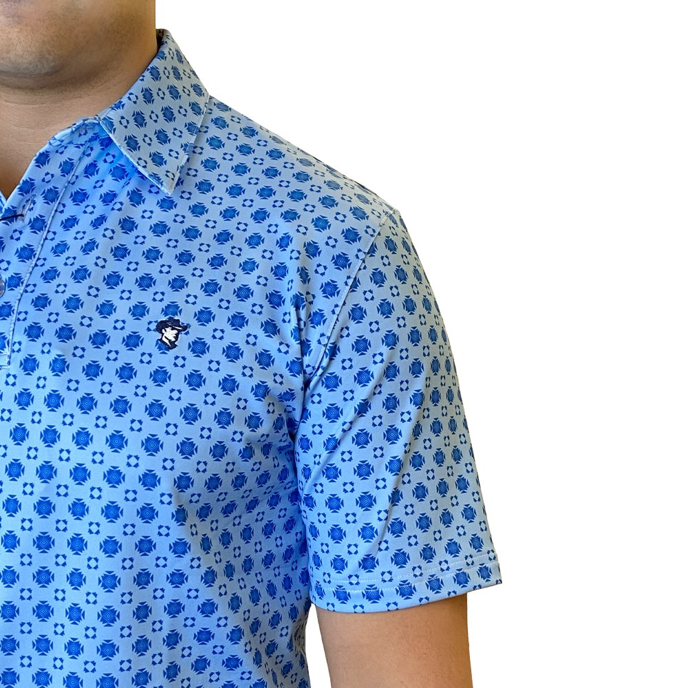 Versatile Starr Mens Printed Short Sleeve Polo Shirt Bright Blue Geo