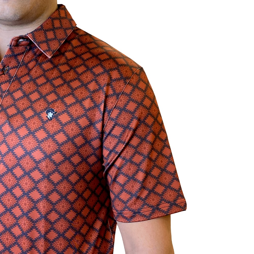 Versatile Starr Mens Printed Short Sleeve Polo Shirt Rust Geo