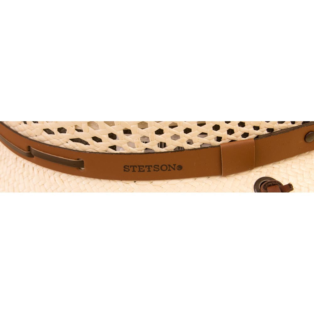 The leather hat band adds a bold, rustic touch to the design, complementing the light straw body with a natural contrast. It’s a nod to Western tradition and modern craftsmanship, making this hat as stylish as it is practical. Stetson’s attention to detail ensures that every element serves both a functional and aesthetic purpose.