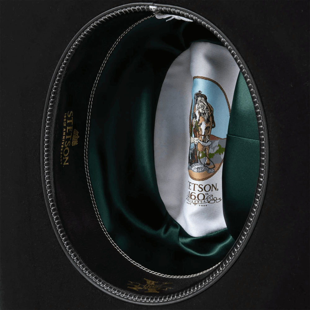 The 160th Anniversary Collection celebrates John B. Stetson’s founding of his namesake company in 1865 and embodies his original commitment to quality and craftsmanship. Like each limited edition hat in the collection, the Golden Eagle is marked by a Five Dollar gold coin emblem—a nod to the price paid for the first Stetson ever sold, by John B. Stetson to a passing bullwhacker in the Colorado Rockies in the early 1860s. For the Golden Eagle, this emblem includes genuine gold plating and the hat includes additional premium upgrades including a “160” deluxe emerald satin liner and custom roan leather sweatband. Each Golden Eagle includes a numbered 100X certificate of authenticity, hardshell travel case and premier hat box.