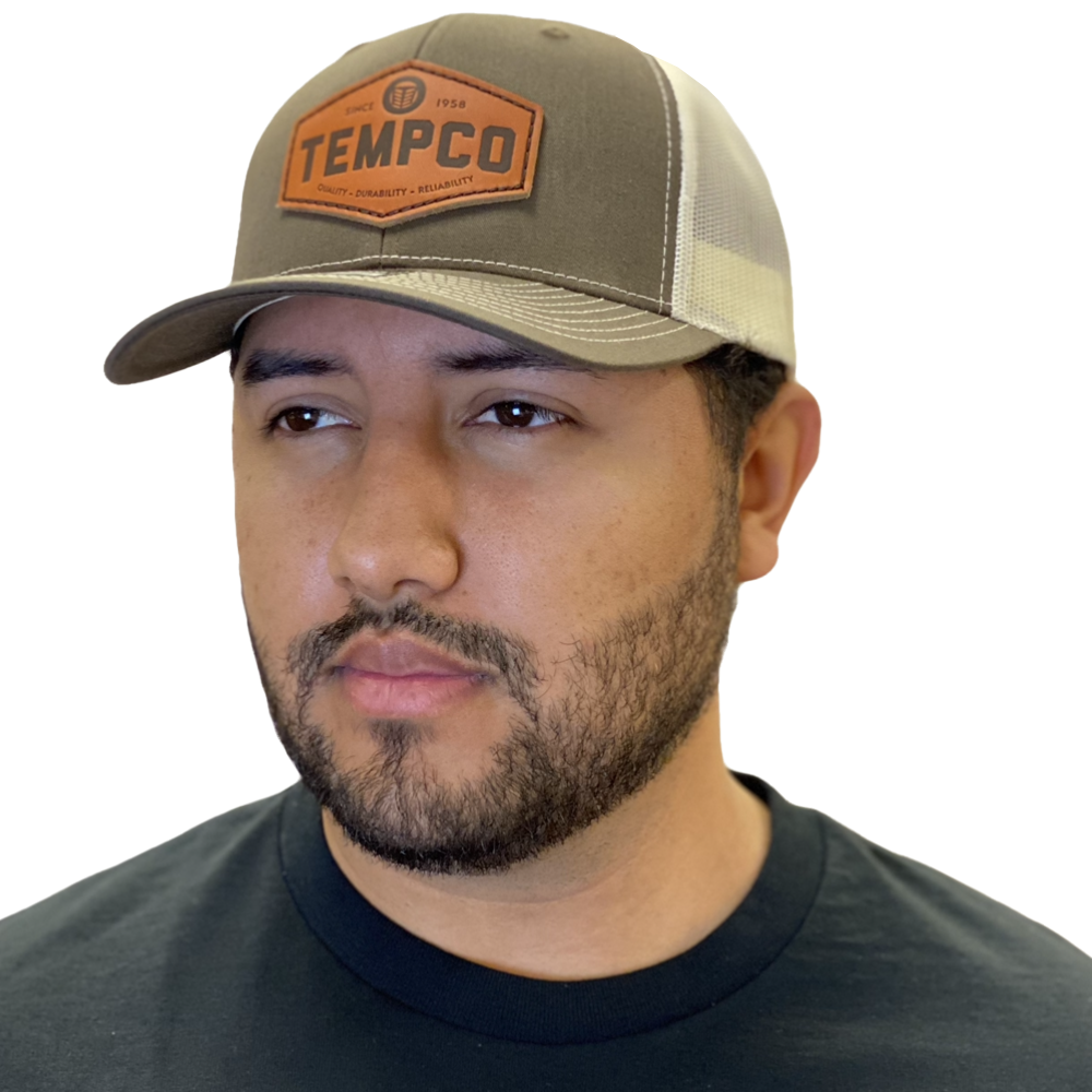 Essential Tempco Mens Leather Badge Cap Khaki/Coffee