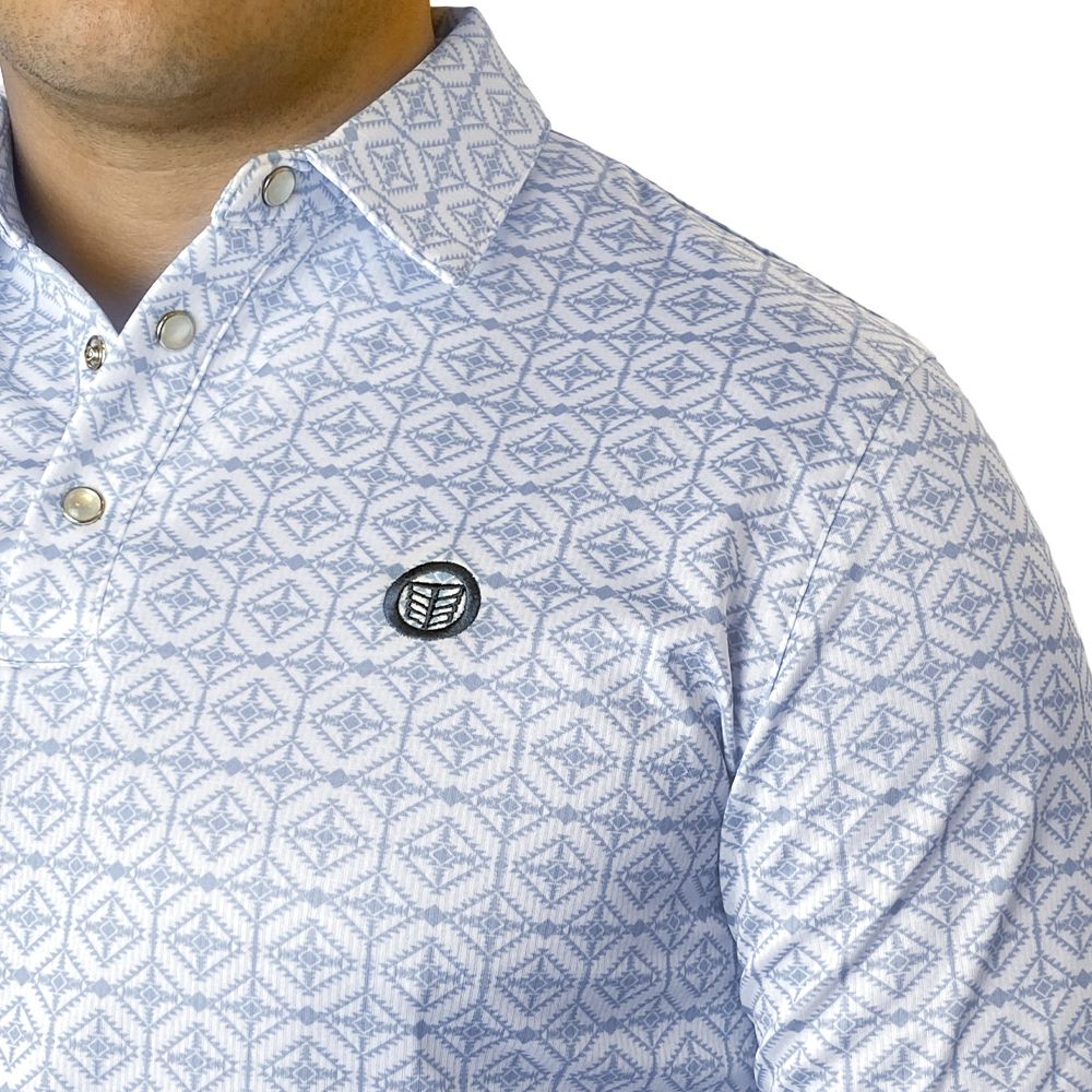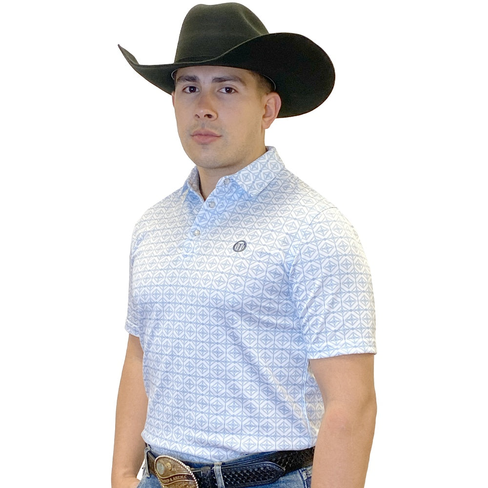 This classic White & Blue polo delivers a clean, polished look with a subtle Western edge. Designed for everyday wear, it offers comfortable short sleeves and a smooth solid finish that pairs easily with jeans or dress pants. A neatly embroidered logo on the left chest adds a refined touch without overpowering the minimalist design, making this polo a versatile choice for work, casual outings, or nights out.
