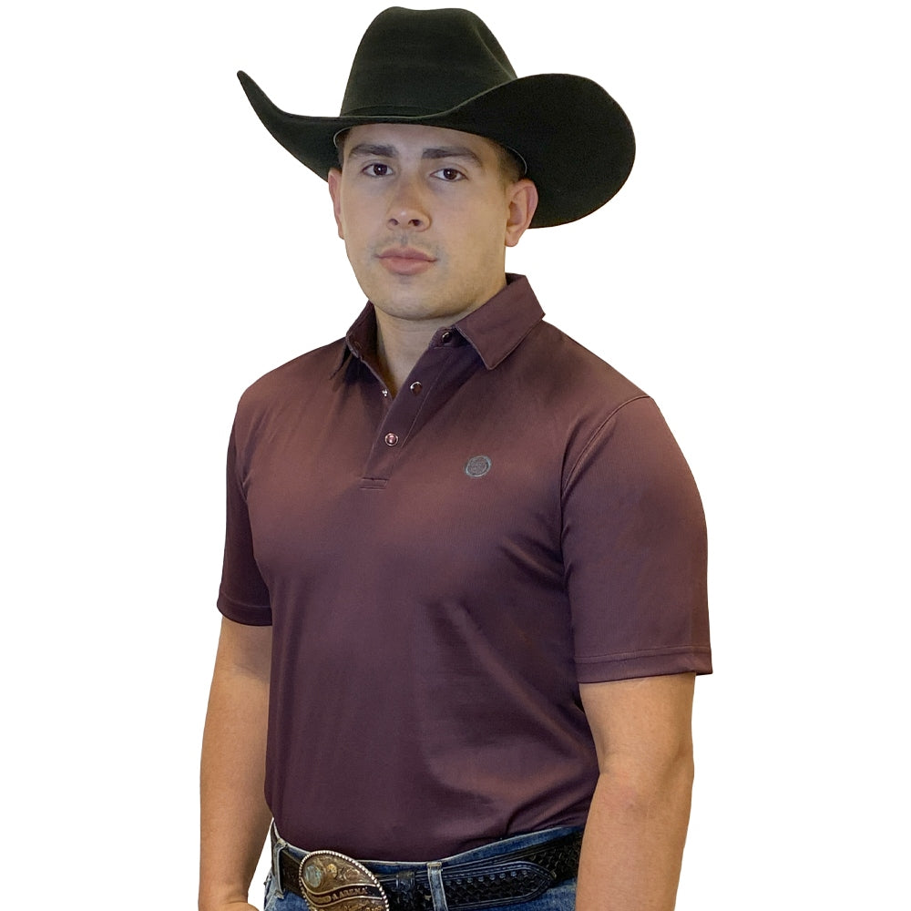 This classic Burgundy polo delivers a clean, polished look with a subtle Western edge. Designed for everyday wear, it offers comfortable short sleeves and a smooth solid finish that pairs easily with jeans or dress pants. A neatly embroidered logo on the left chest adds a refined touch without overpowering the minimalist design, making this polo a versatile choice for work, casual outings, or nights out.