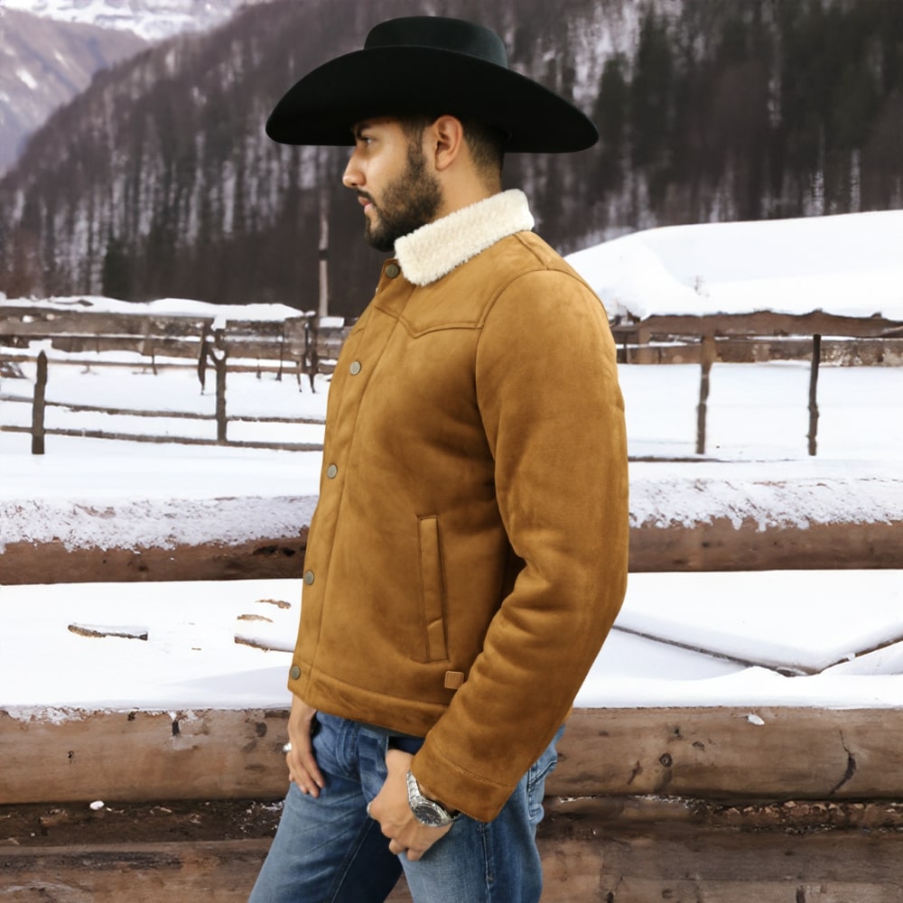 Essential Tempco Mens Marlboro Trucker Jacket. This Mens Suede Trucker Jacket mixes the old west with contemporary fashion. Made of faux suede, this full-zip jacket has a snap front storm flap. Two side-entry pockets give it that authentic Western look. Throw this jacket over anything and for warmth and an authentic western look.