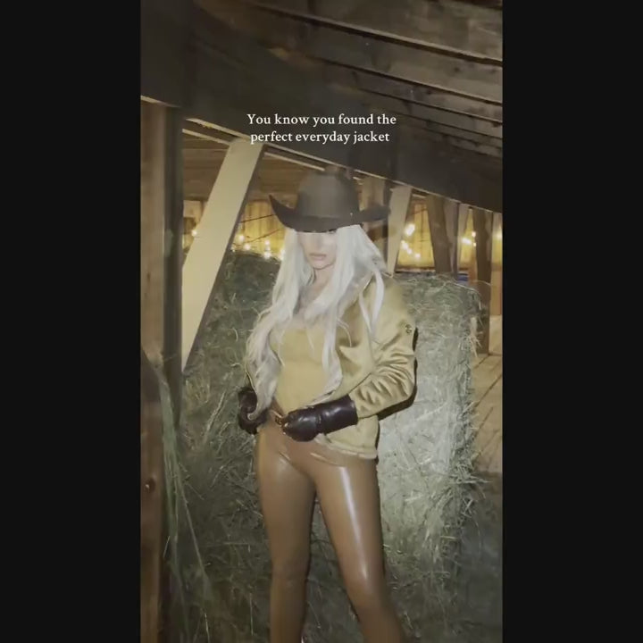 Beautiful Tempco Womens Olivia Jacket. This stylish womens faux suede jacket has a cozy yet stylish faux shearling lining so you'll stay warm in cold weather for a Nashville night out on the town. This jacket is versatile to wear with any outfit for your favorite winter look. Embellished with matching accents including zipper and logo on arm.