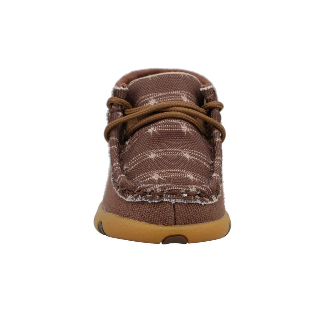 Step out in style with Twisted X Chukka Driving Mocs! Made with a fabric upper and cozy fabric lining, these infant shoes also feature eco-friendly nylon laces and a Blend85™ footbed made from 85% recycled foam. Plus, the ecoTWEED™ lining is made from recycled plastic bottles. Let your little one's first steps be taken in this sustainable and stylish choice!