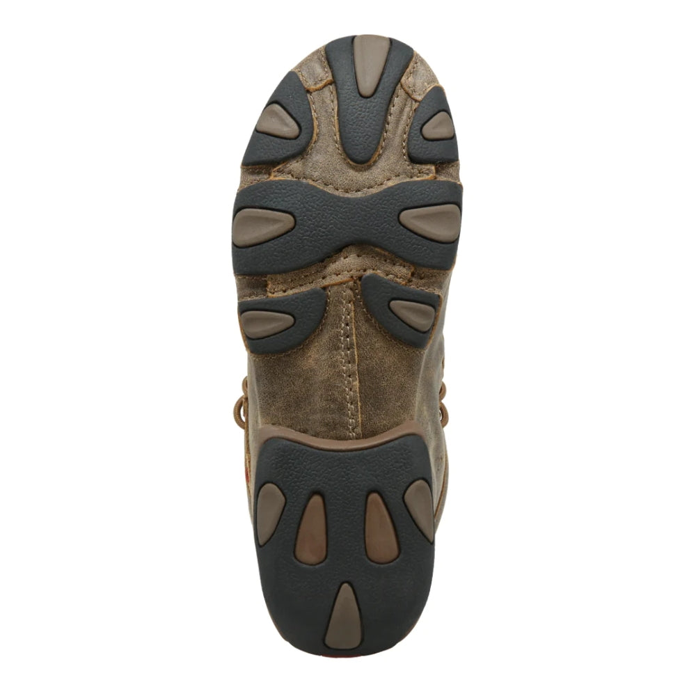 Authentic Twisted X Womens Chukka Driving Moc Shoes. The women's casual chukka driving moc is a true Twisted X original! The chukka driving moc makes an unforgettable statement about true comfort and style in casual footwear. Blending a traditional open-laced profile with a unique leather-wrapped outsole and moc toe design with integrated comfort technology that provides timeless quality and style. The molded footbed, three-quarter length composite insole, and the Twisted X® driving moc outsole combine to produce one of the most comfortable, ankle-high casual shoes you can find.