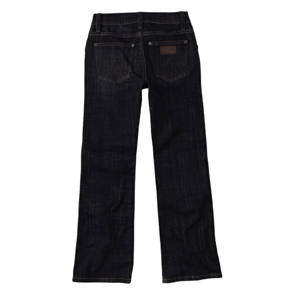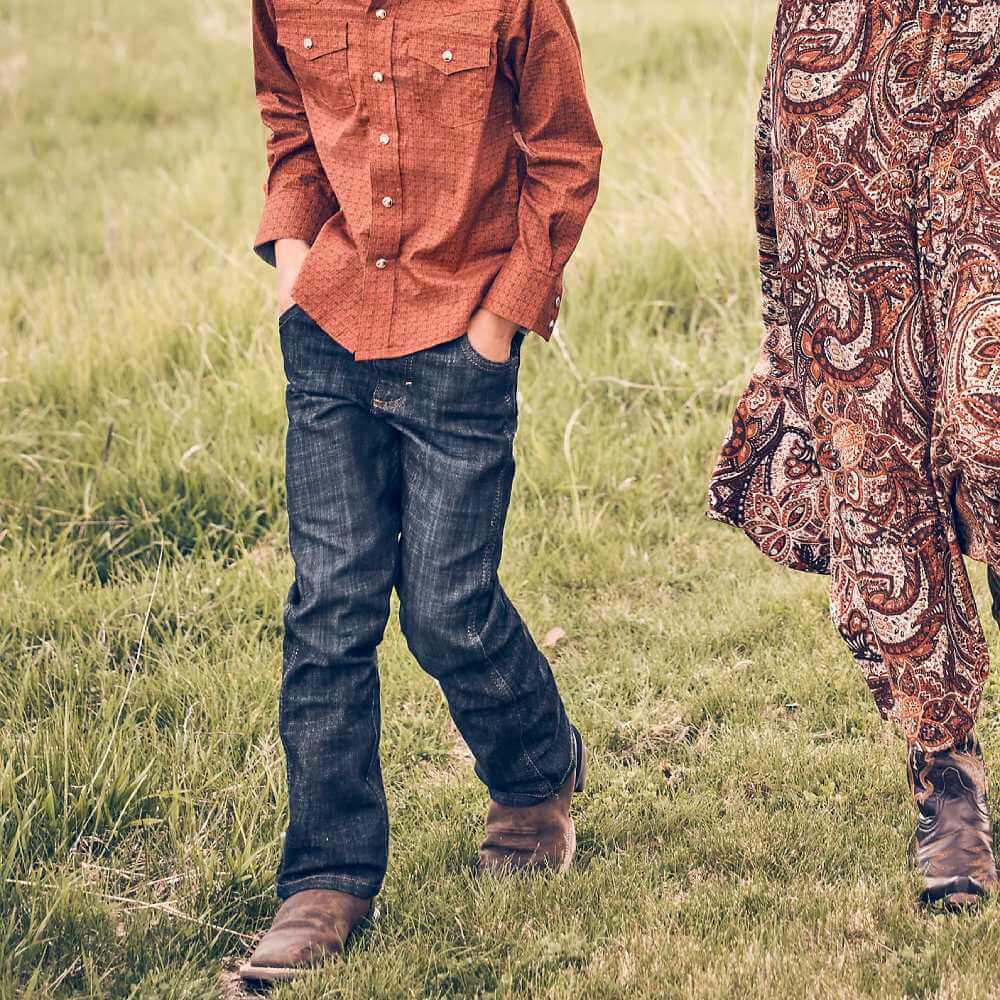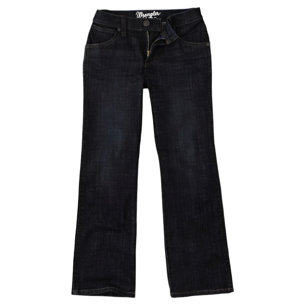 Essential Wrangler Boys Retro Slim Boot Jeans. He'll never want to wear another pair of jeans. Wrangler Boy's Retro® Slim Boot Jean takes Wrangler’s classic Western styling with an adjust-to-fit waistband that grows with him. These bootcut jeans sit lower on the waist, fit slim through the thigh, and leave plenty of room for his boots. Plus, they're crafted from cotton with just a hint of stretch for extra comfort.