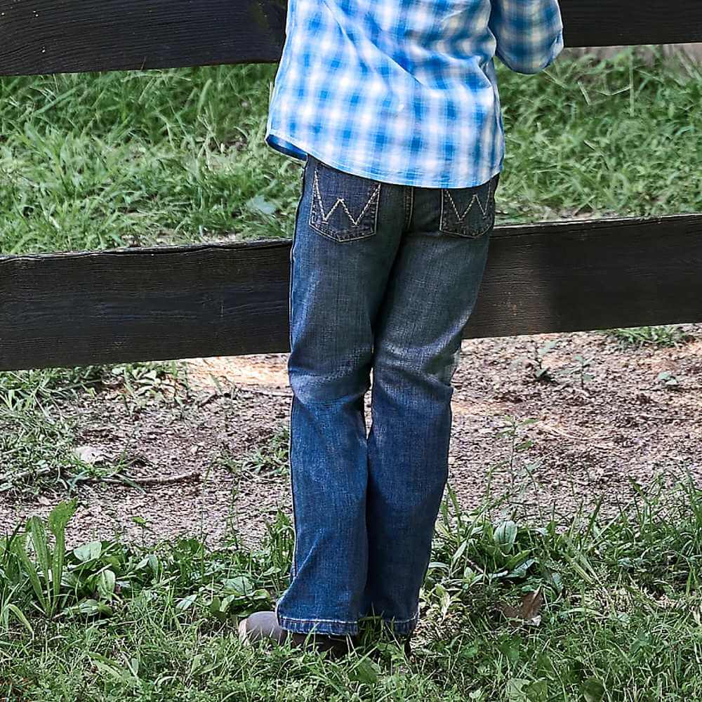 Classic Wrangler Boys Retro Slim Boot Jeans. Wrangler Boys Retro Boot Jeans He'll never want to wear another pair of jeans. Wrangler Boy's Retro® Slim Boot Jean takes Wrangler’s classic Western styling with an adjust-to-fit waistband that grows with him. These bootcut jeans sit lower on the waist, fit slim through the thigh, and leave plenty of room for his boots. Plus, they're crafted from cotton with just a hint of stretch for extra comfort.