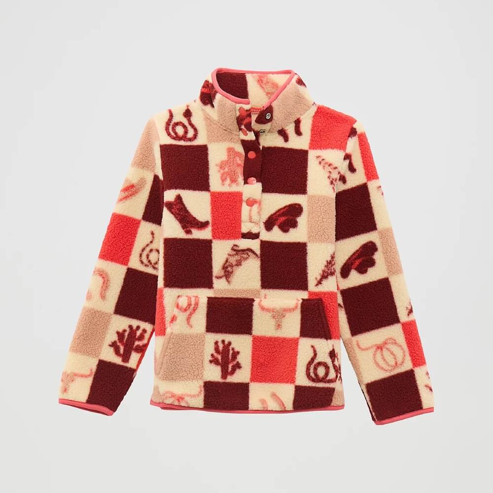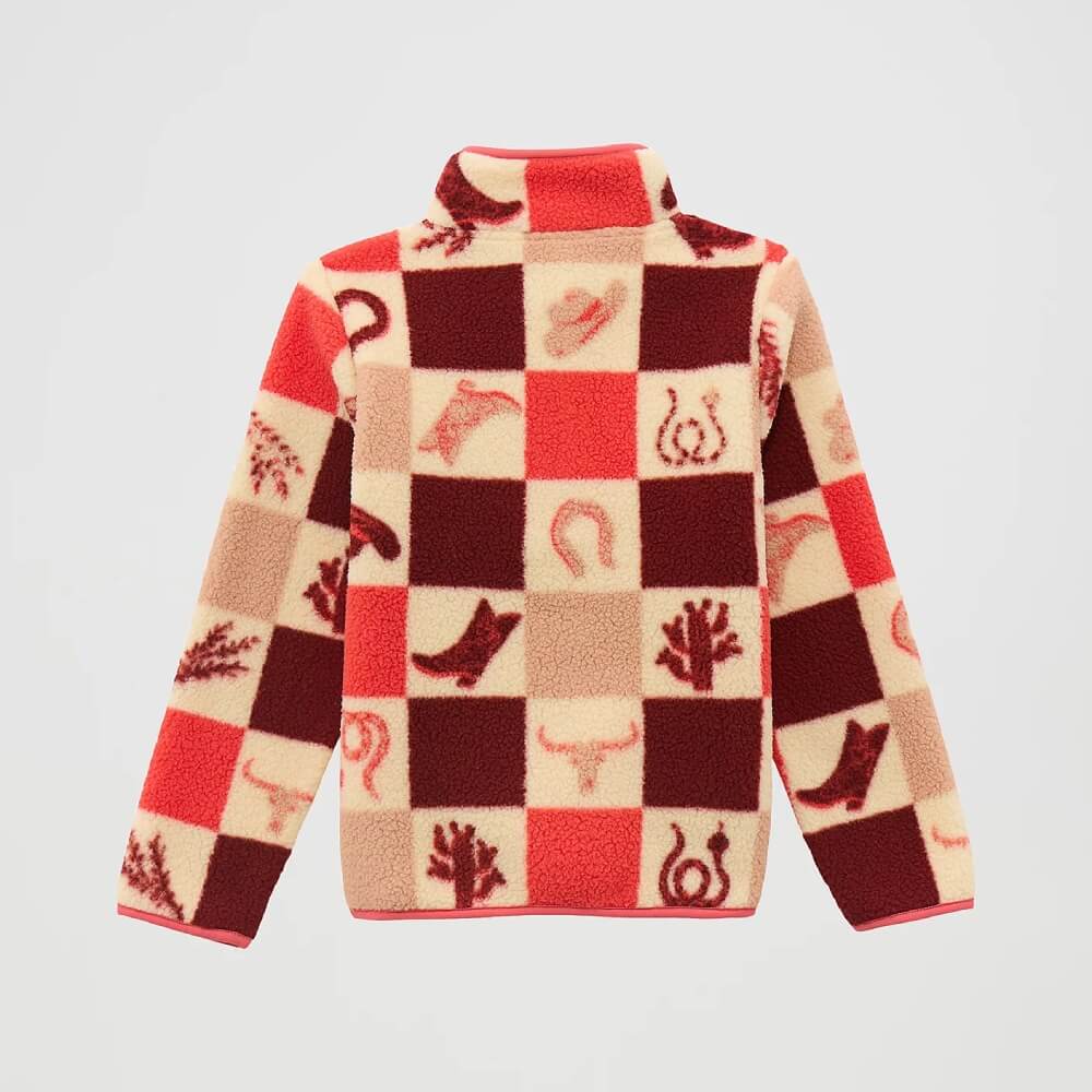 Cute Wrangler Girls Half-Snap Pullover Pink. When the days grow colder, your cowgirl will love bundling up in this Half-Snap Pullover. It’s crafted for comfort and softness that can’t be beat. It features a partial snap closure at the neck and a sweet, checkered print in pretty hues of pink and brown with Western motifs sprinkled in for an extra touch of authenticity.