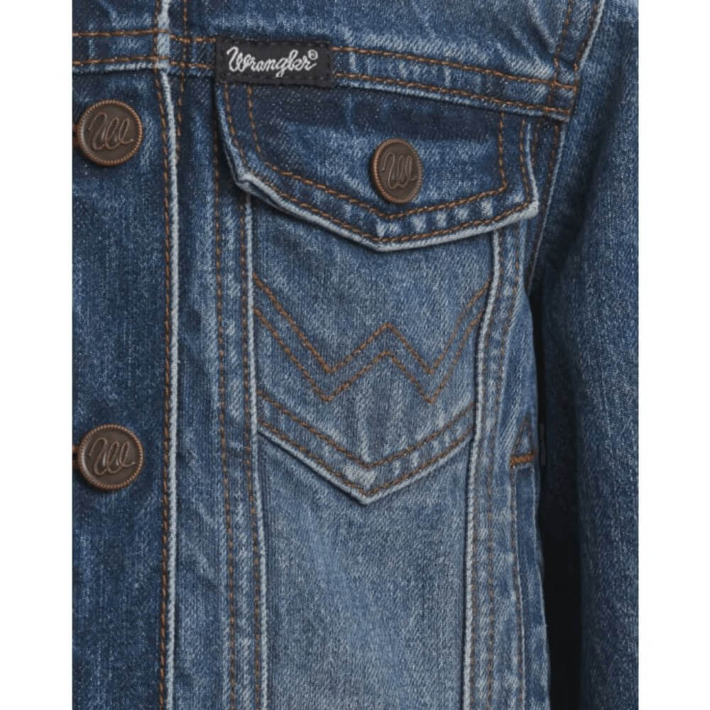 Essential Wrangler Girls Retro Jean Jacket. Wrangler knows how to dress your kids. For play or school, Wrangler covers the kids. Wrangler dresses your little one in classic style.