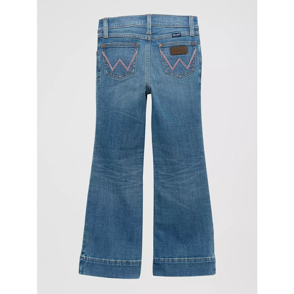 From Wrangler’s collection of styles for children, the Wrangler® girls' trouser features plenty of style in an everyday staple made to keep her comfortable all day long. The adjust-to-fit waistband (in sizes 4-6X) is designed to suit her needs by helping her get her perfect fit, even as she grows. Hip pocket embroidery, classic five-pocket styling, and a trouser leg opening that's slightly wider than a bootcut offer an authentic style she'll want to wear every day of the week.