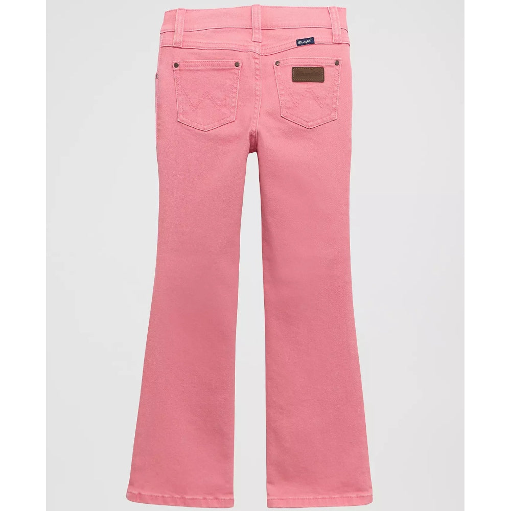 Your young cowgirl’s going to love the way she looks and feels In this Wrangler Girl’s Retro® Vibrant Bootcut Jean. It’s crafted from a comfortable cotton blend with a hint of stretch to keep her comfortable. These eye-catching jeans come with Wrangler’s signature five-pocket styling, the ‘W’ stitching, a Wrangler® logo patch, and a classic leg cut to fit over her favorite boots. The adjust-to-fit waistband on sizes 4-6X will last through growth spurts.